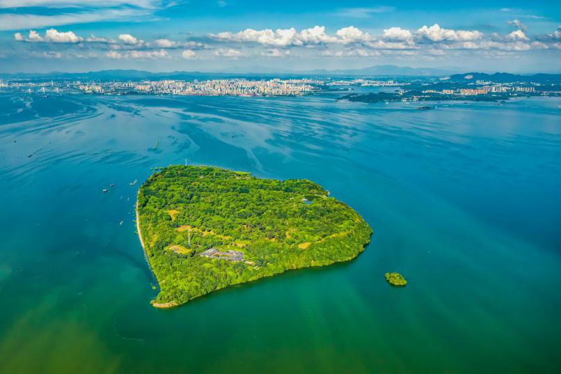 君山島總面積0.96平方公里,與千古名樓岳陽(yáng)樓隔湖相望,系洞庭湖中小島,有大小山峰72座,形似青螺,詩(shī)稱:“白銀盤里一青螺!