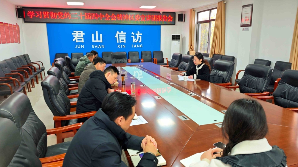 宣講會(huì)上,呂荷靜緊密圍繞學(xué)習(xí)貫徹習(xí)近平總書記在黨的二十屆四中全會(huì)上的重要講話精神和全會(huì)《建議》,闡明了黨的二十屆四中全會(huì)的重大意義,闡釋了“十四五”時(shí)期我國(guó)發(fā)展取得的重大成就和“十五五”時(shí)期經(jīng)濟(jì)社會(huì)發(fā)展環(huán)境,解讀了“十五五”時(shí)期經(jīng)濟(jì)社會(huì)發(fā)展的指導(dǎo)方針、主要目標(biāo)、戰(zhàn)略任務(wù)、重大舉措和根本保證。報(bào)告緊密結(jié)合君山實(shí)際,對(duì)于準(zhǔn)確把握黨中央對(duì)經(jīng)濟(jì)社會(huì)發(fā)展特別是推進(jìn)信訪工作法治化、推動(dòng)矛盾糾紛化解等一系列重大部署,提供了精準(zhǔn)指導(dǎo)。
