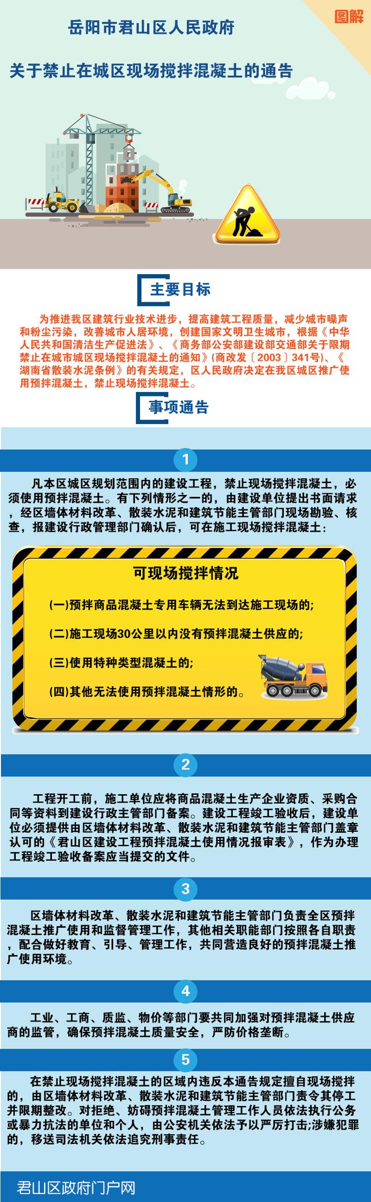 岳陽市君山區(qū)人民政府關(guān)于禁止在城區(qū)現(xiàn)場攪拌混凝土的通告