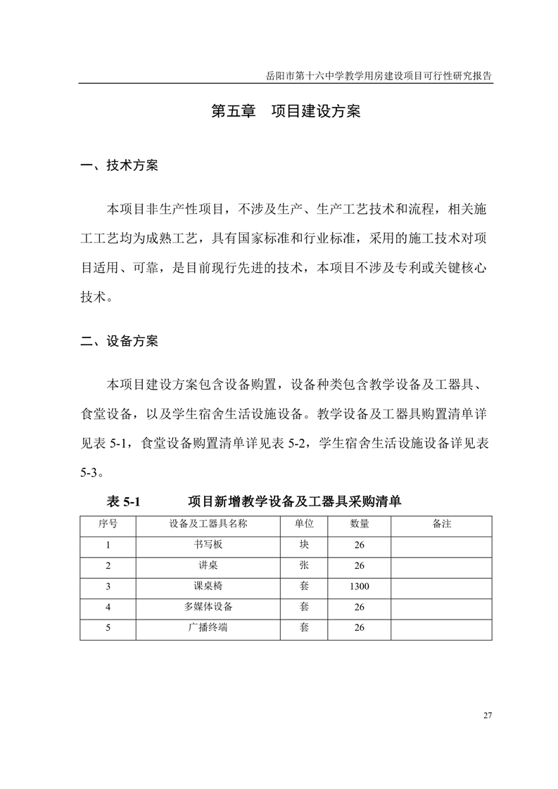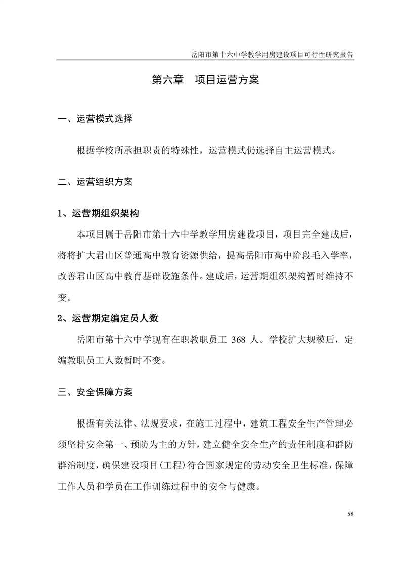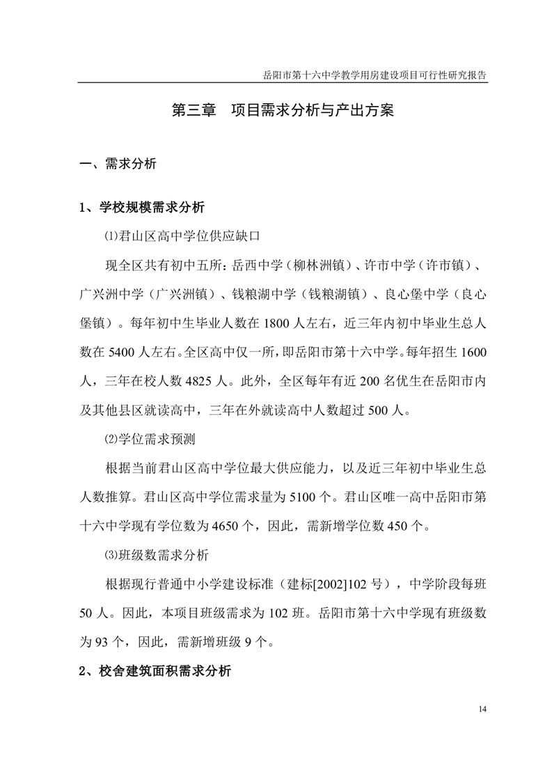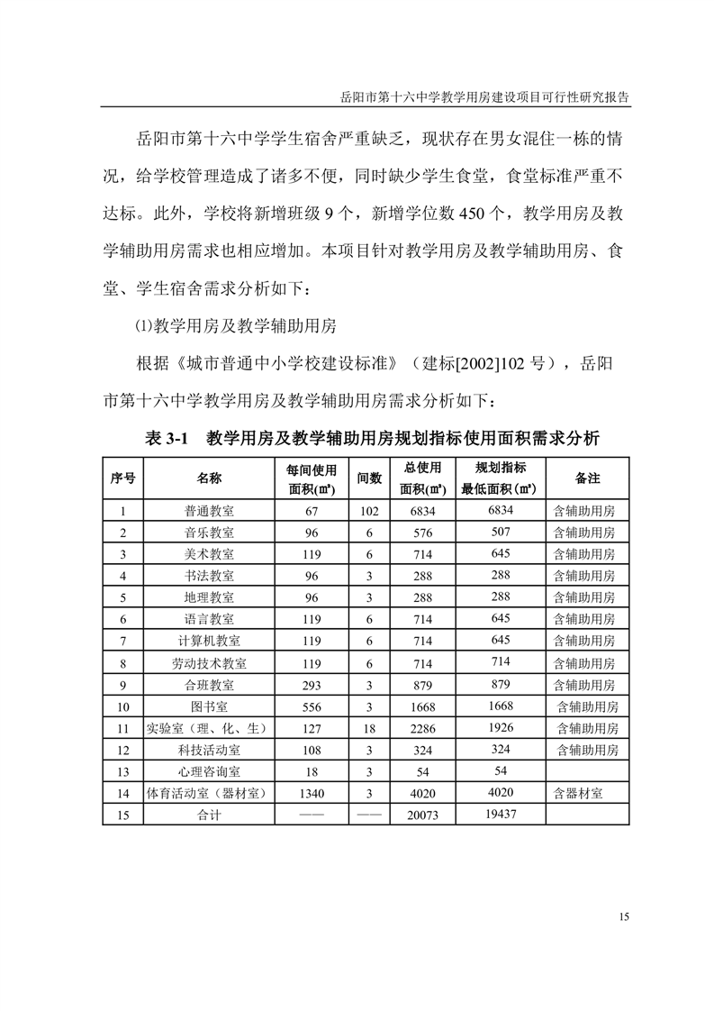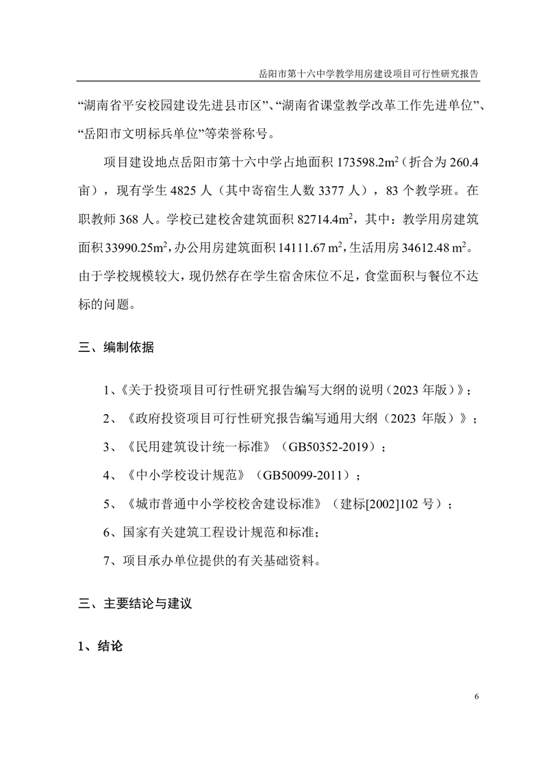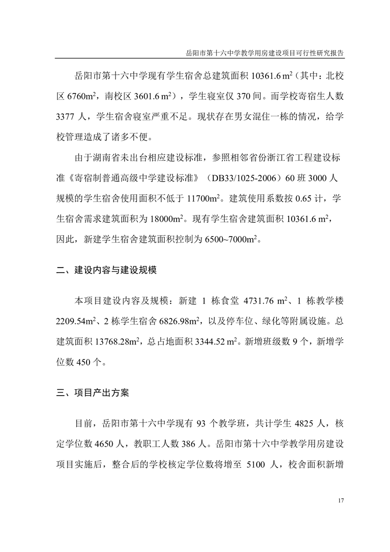 岳陽市第十六中學(xué)教學(xué)用房建設(shè)項(xiàng)目可行性研究報(bào)告