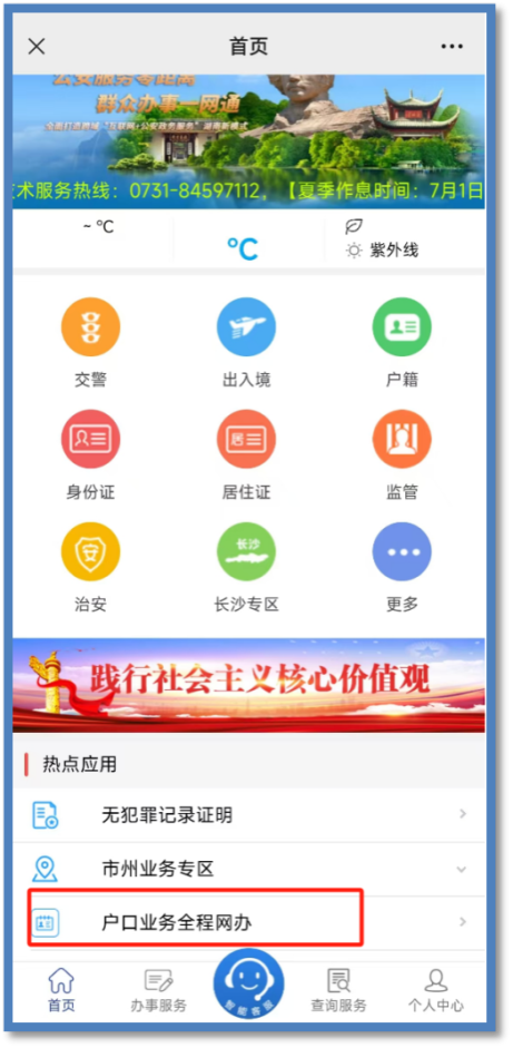 一、湖南戶籍居民可微信關(guān)注“湖南公安服務(wù)平臺(tái)”公眾號(hào),注冊(cè)并實(shí)人認(rèn)證登錄,點(diǎn)擊“微警務(wù)”,進(jìn)入平臺(tái)首頁,在熱點(diǎn)應(yīng)用欄中選擇“戶口業(yè)務(wù)全程網(wǎng)辦”,或微信登錄省政府“湘易辦”APP首頁,點(diǎn)擊“戶口業(yè)務(wù)全程網(wǎng)辦”,進(jìn)入湖南戶政業(yè)務(wù)網(wǎng)上辦理平臺(tái),在“我要辦理”菜單中選擇要申辦的業(yè)務(wù)類型,閱讀網(wǎng)辦須知,填寫相關(guān)信息,拍照上傳證明材料,提交辦件申請(qǐng)。