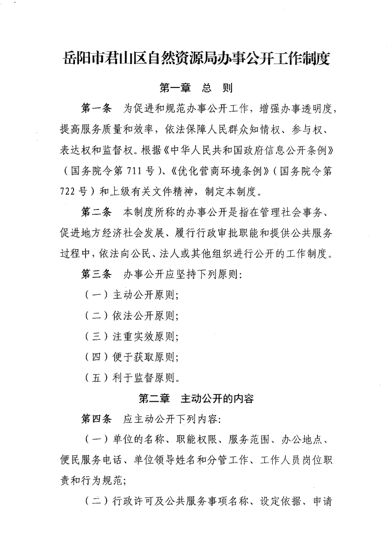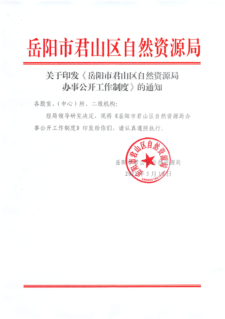 關(guān)于印發(fā)《岳陽市君山區(qū)自然資源局辦事公開工作制度》的通知