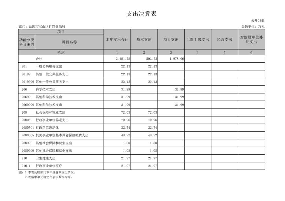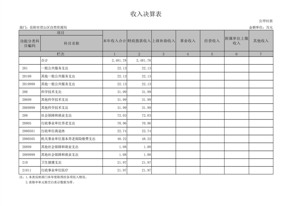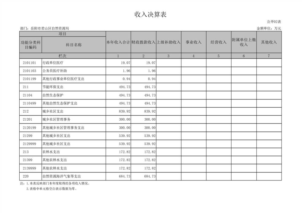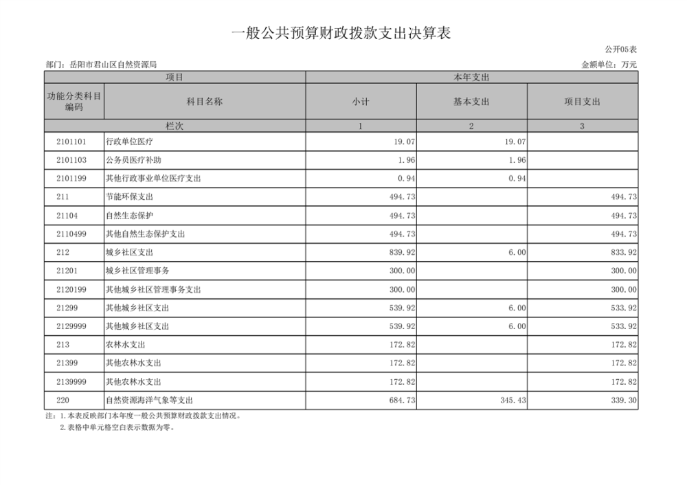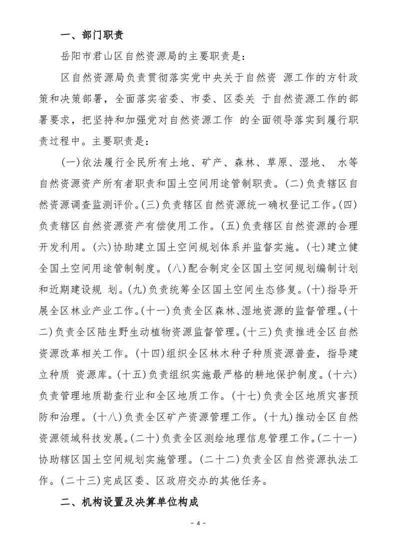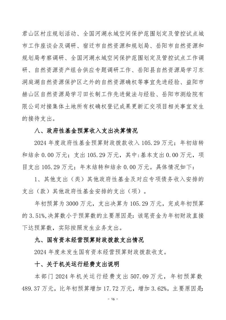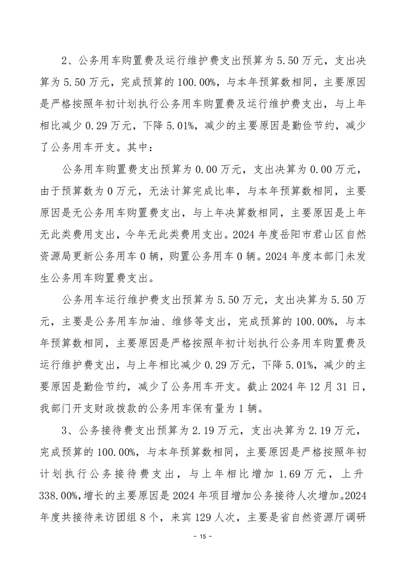 2024年度岳陽市君山區(qū)自然資源局部門決算公開