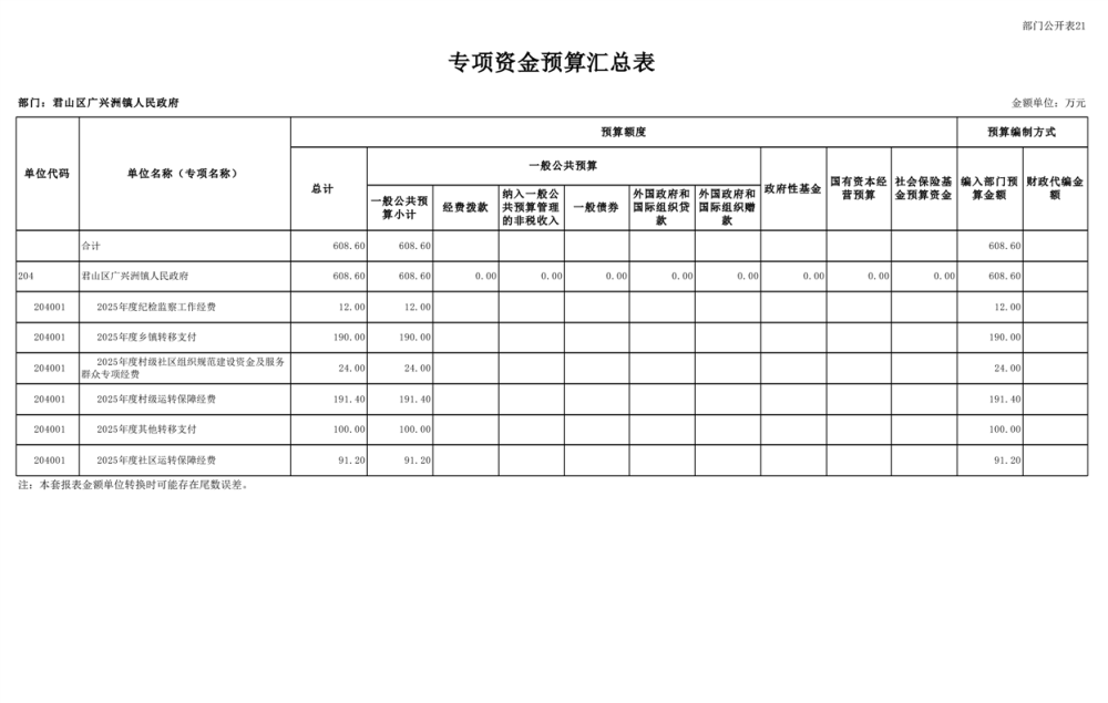 2025年君山區(qū)廣興洲鎮(zhèn)人民政府部門預(yù)算公開