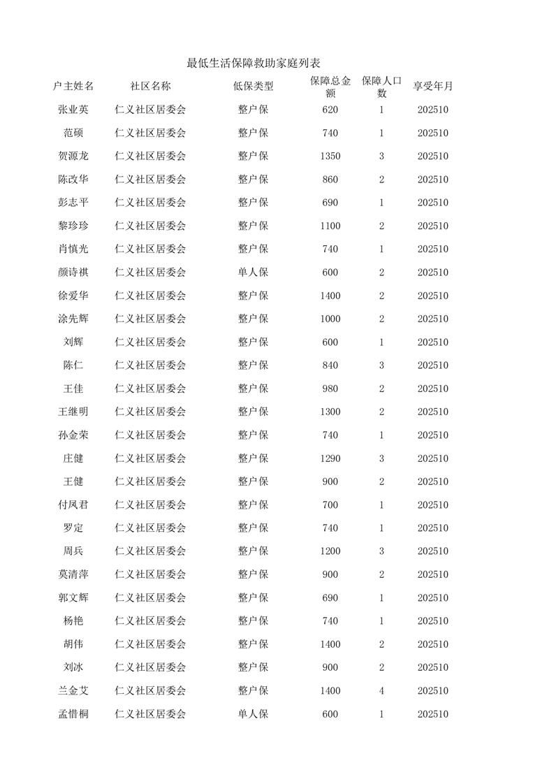 良心堡鎮(zhèn)2025年最低生活保障救助家庭公示