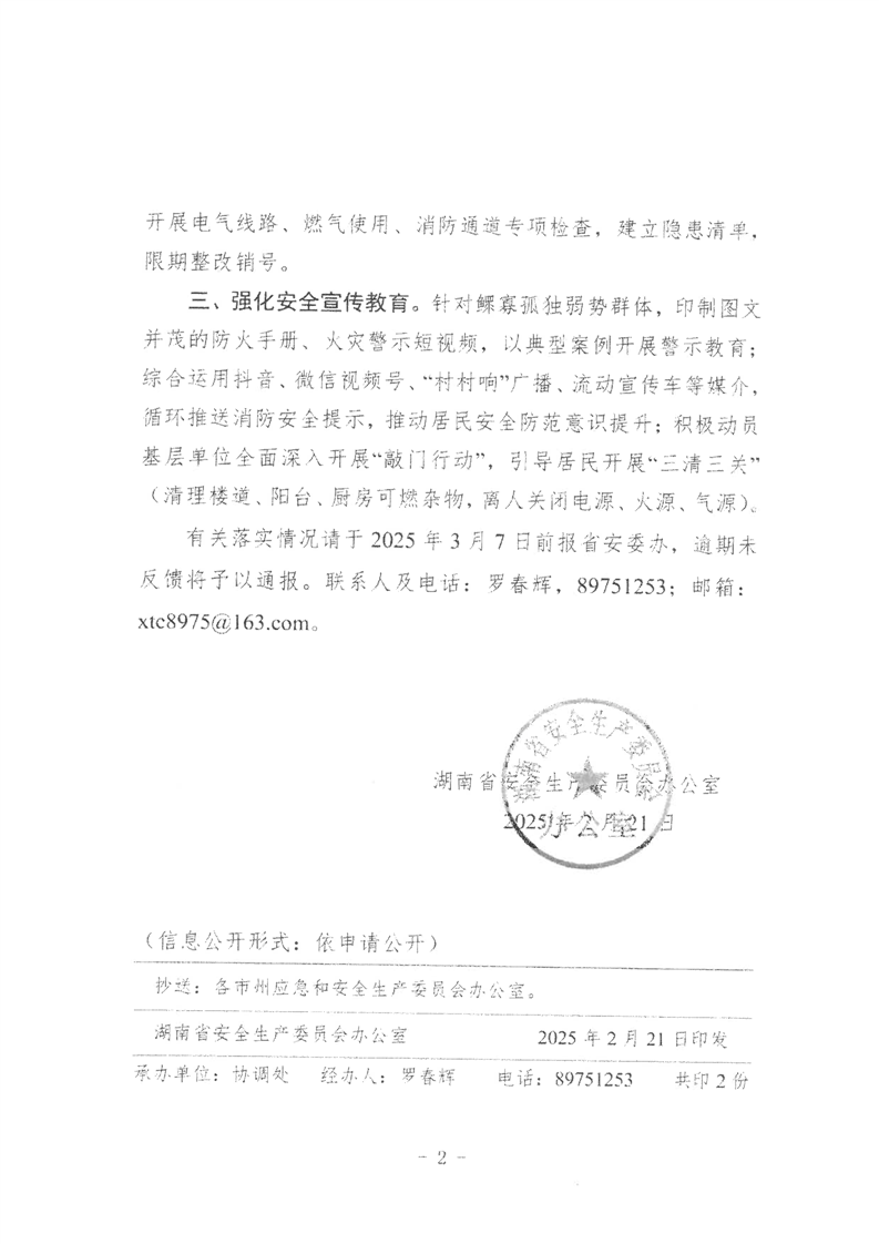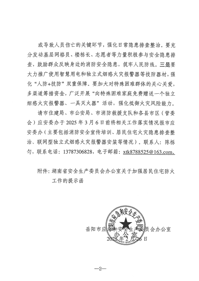 岳陽市應急和安全生產委員會辦公室轉發(fā)《湖南省安全生產委員會辦公室關于加強居民住宅防火工作的提示函》的通知