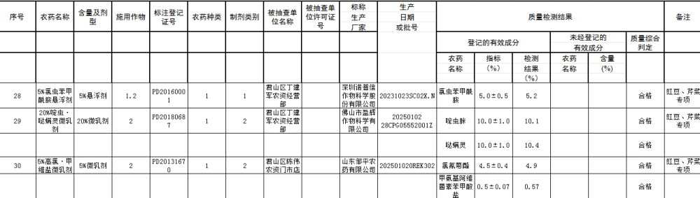 君山區(qū)2025年農(nóng)藥監(jiān)督抽查結(jié)果公示