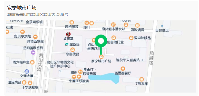 地址:君山區(qū)柳林洲街道(家寧城市廣場)
