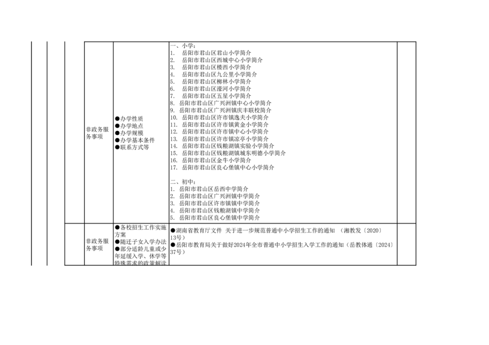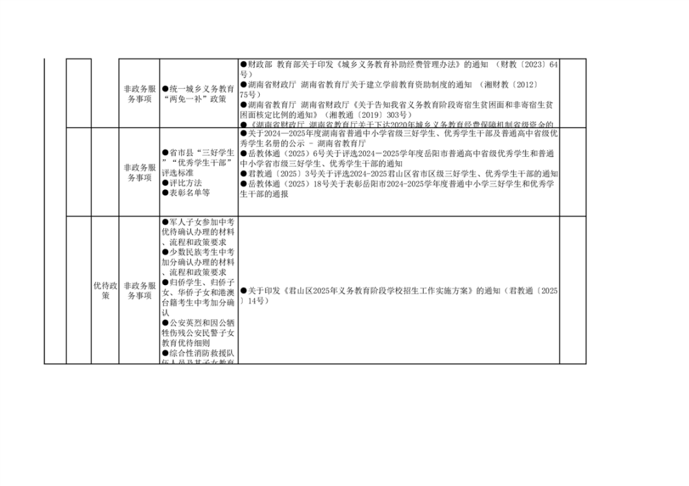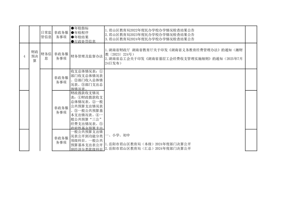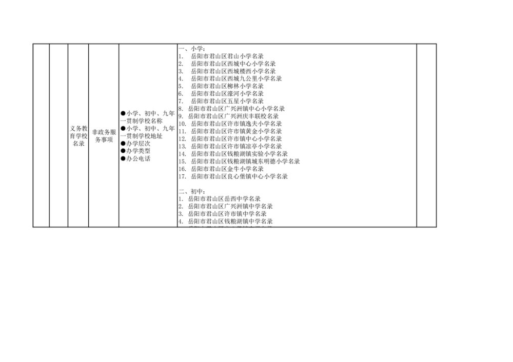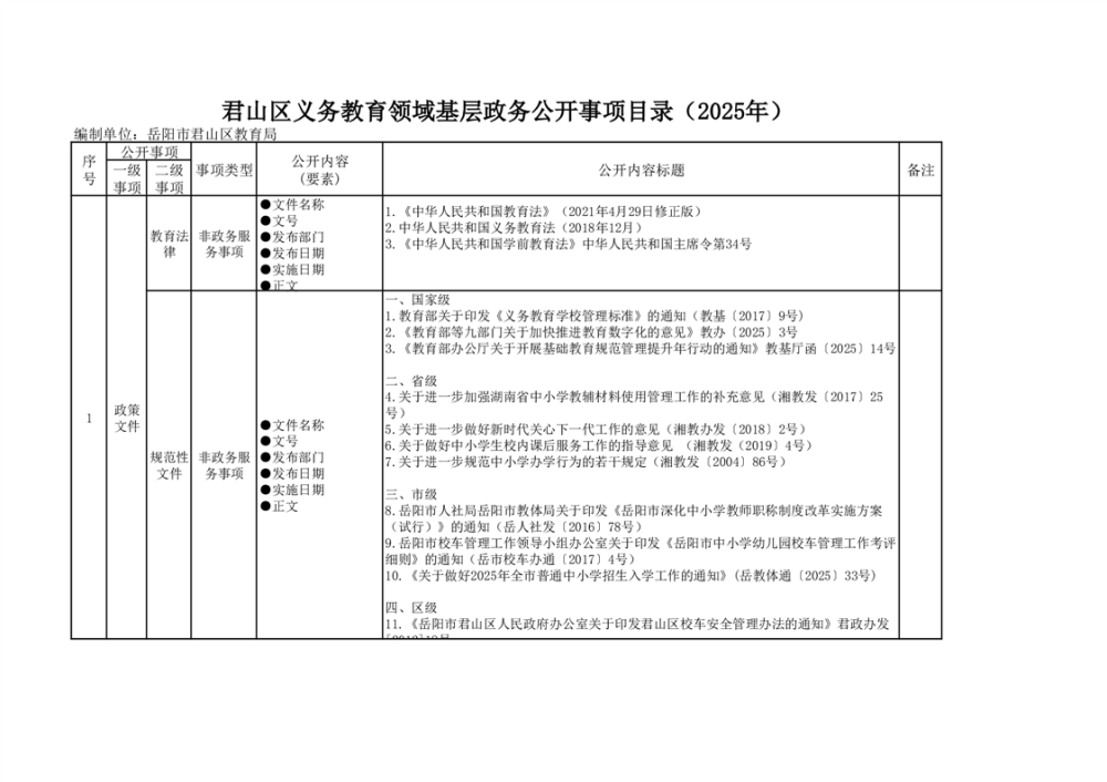 君山區(qū)義務(wù)教育領(lǐng)域基層政務(wù)公開(kāi)標(biāo)準(zhǔn)目錄(2025年)
