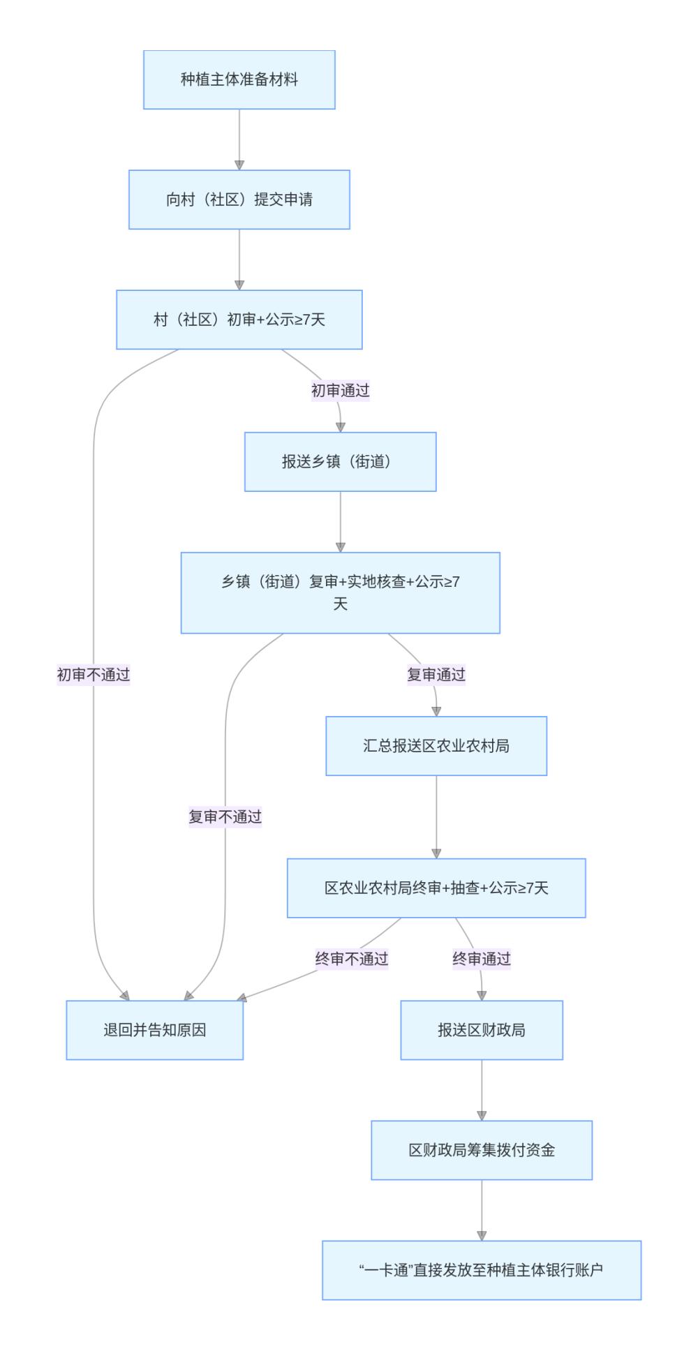 申報(bào)程序:遵循 “村(社區(qū))初審→鄉(xiāng)鎮(zhèn)(街道)復(fù)審→區(qū)農(nóng)業(yè)農(nóng)村局終審” 三級(jí)審核機(jī)制,每級(jí)審核均需完成信息核實(shí)與公示流程。