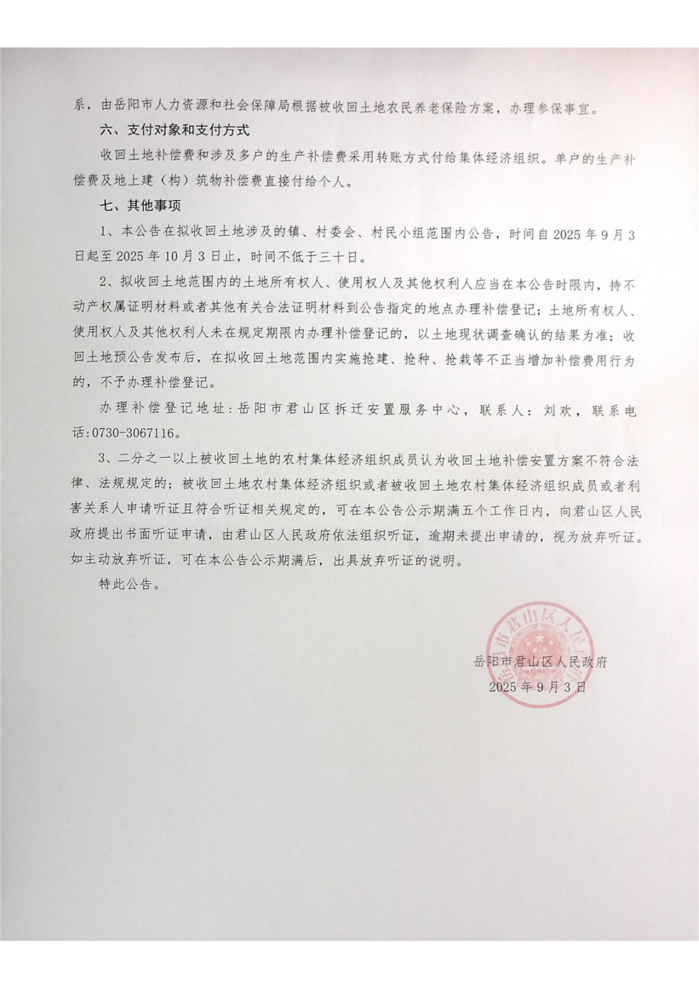 關(guān)于岳陽(yáng)市君山區(qū)原實(shí)驗(yàn)豬場(chǎng)地塊土地收回預(yù)公告、補(bǔ)償安置方案公告、調(diào)查紅線(xiàn)圖公示