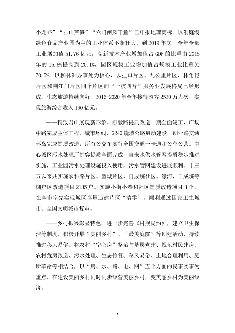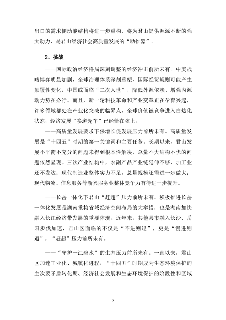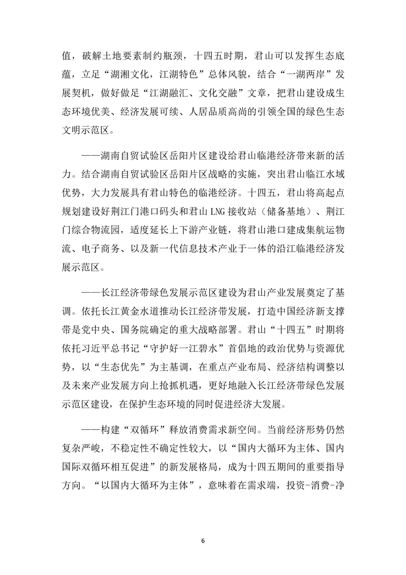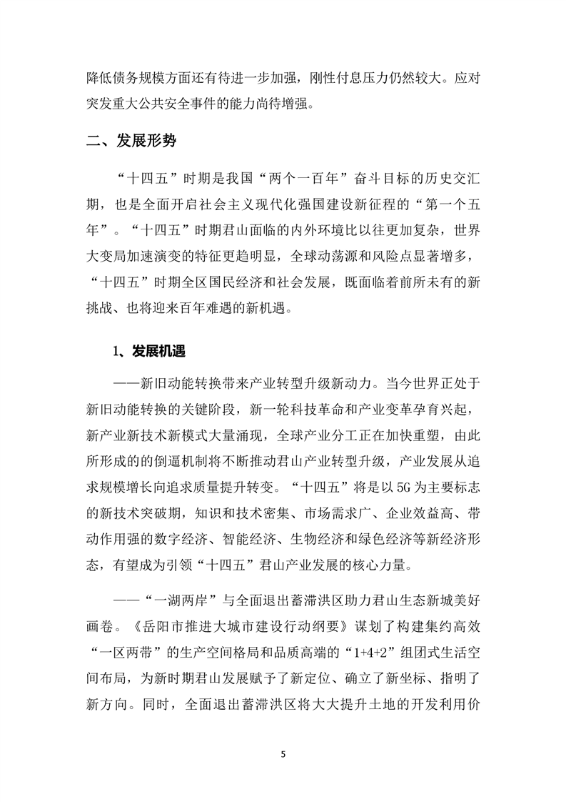 君山區(qū)“十四五”規(guī)劃綱要(征求意見稿)(第5稿)