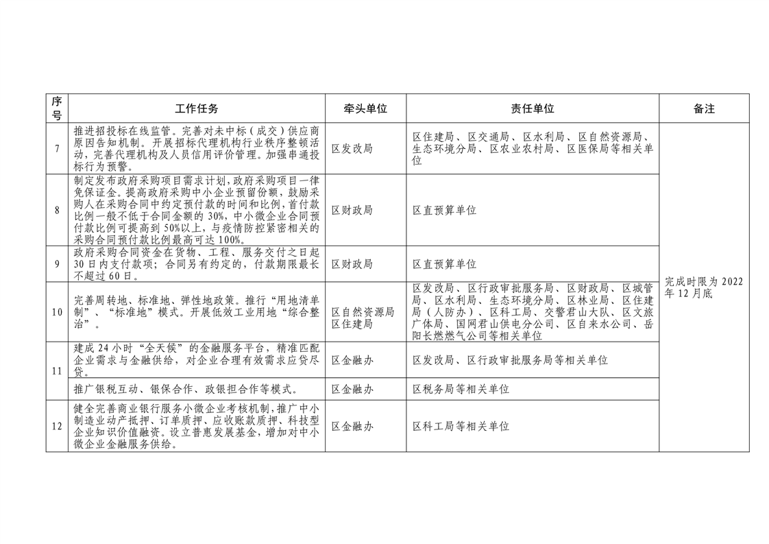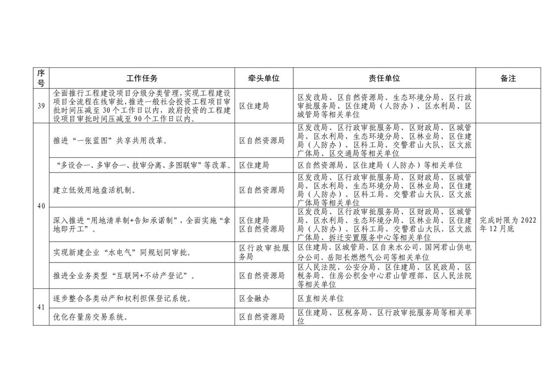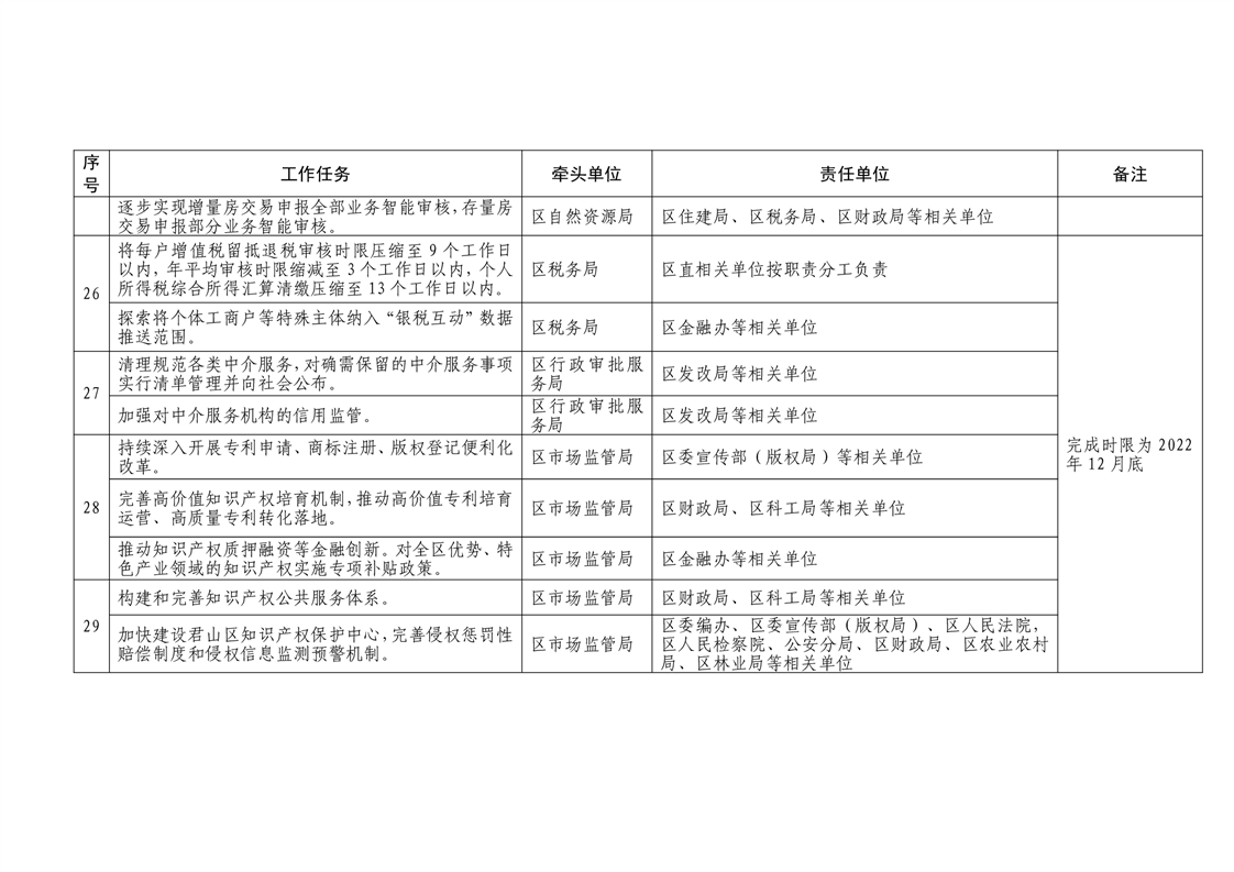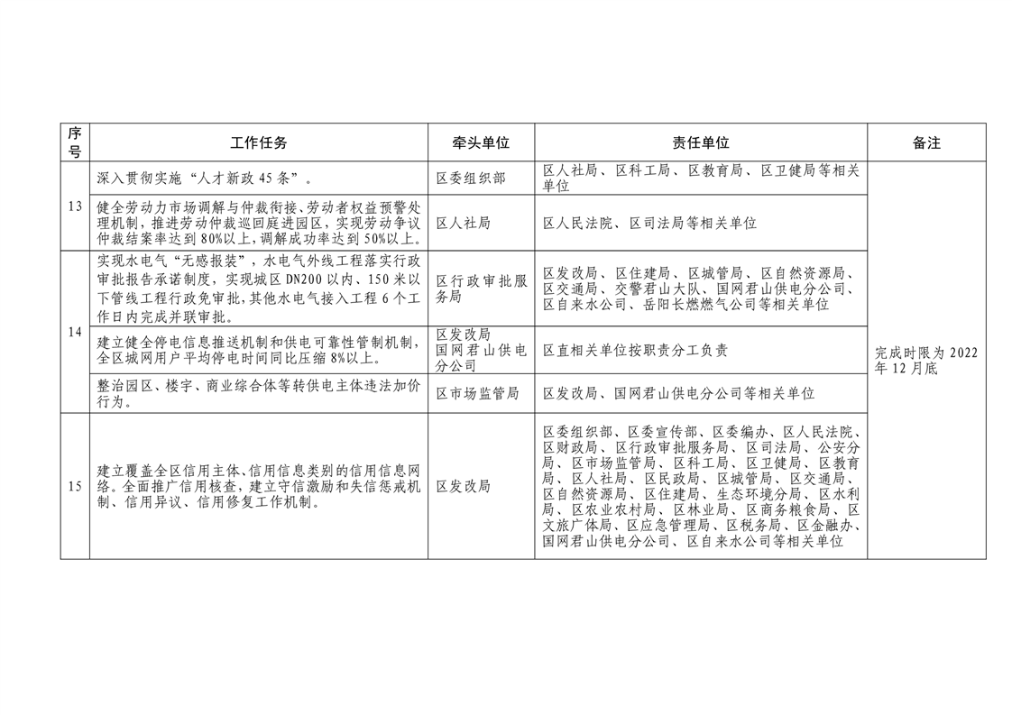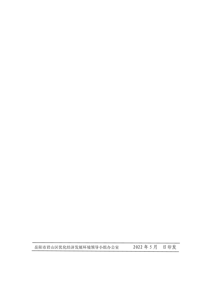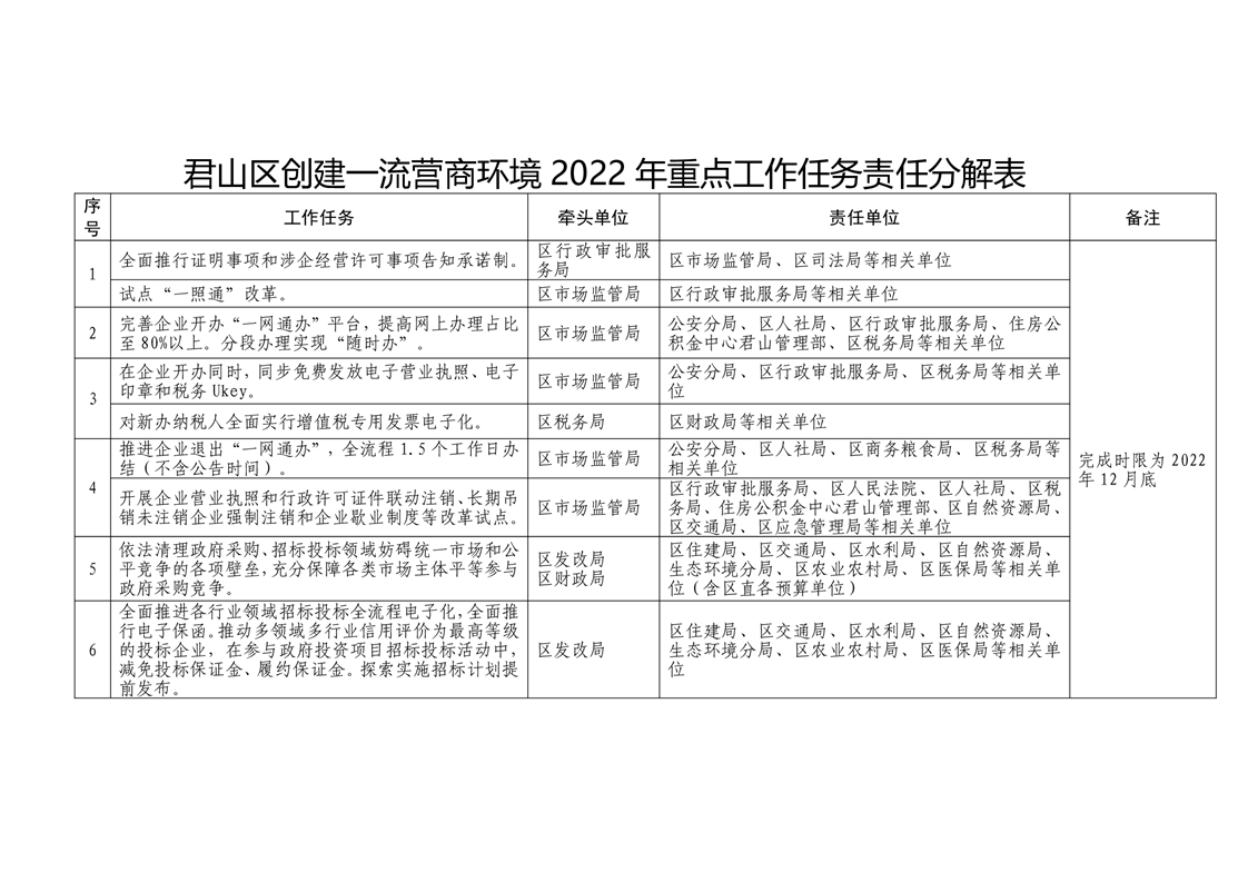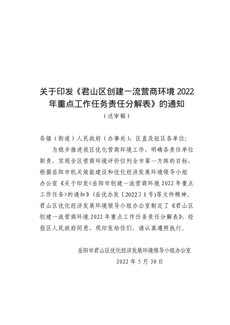 關(guān)于印發(fā)《君山區(qū)創(chuàng)建一流營商環(huán)境2022年重點工作任務(wù)分解表》的通知(征求意見稿)