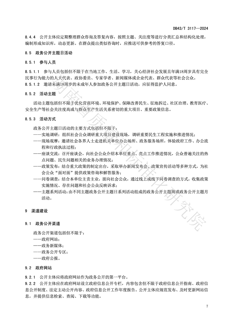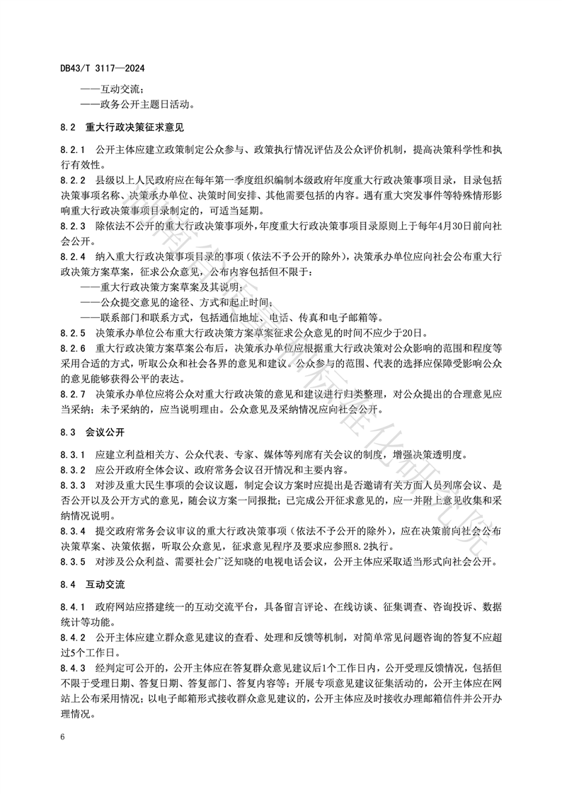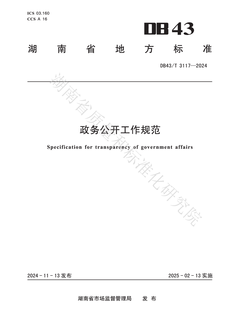 湖南省地方標(biāo)準(zhǔn)《政務(wù)公開工作規(guī)范》(DB43_T 3117-2024)