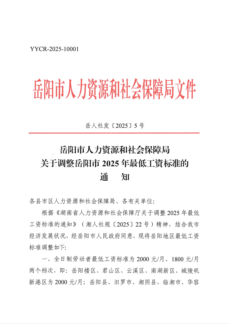 岳陽市人力資源和社會保障局關(guān)于調(diào)整岳陽市2025年最低工資標準的通知