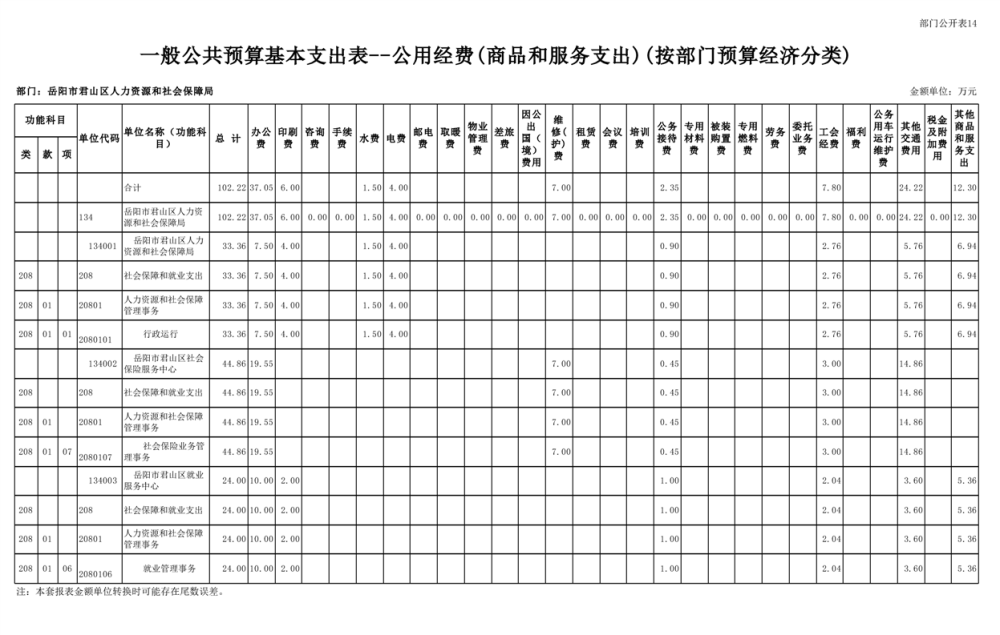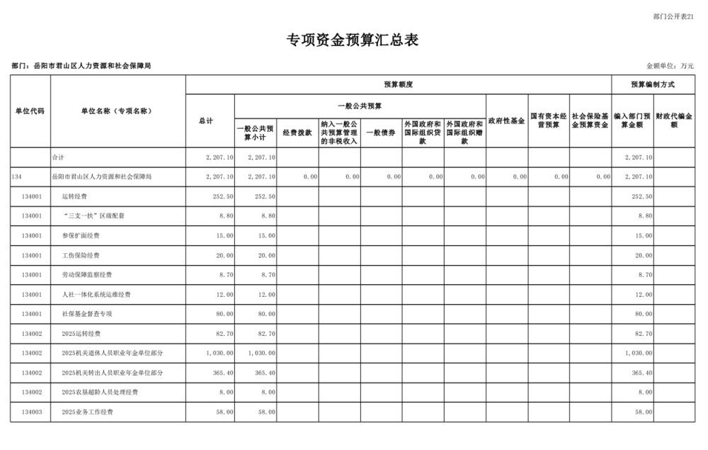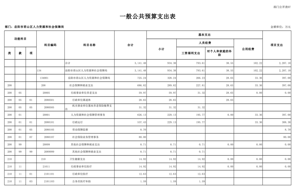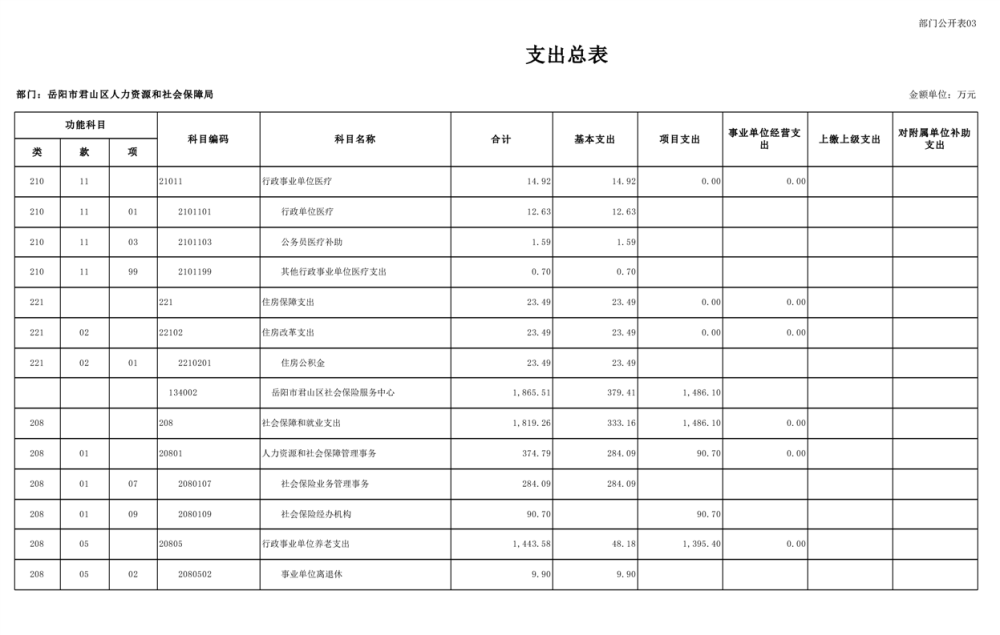 2025年岳陽市君山區(qū)人力資源和社會保障局(部門)預(yù)算公開