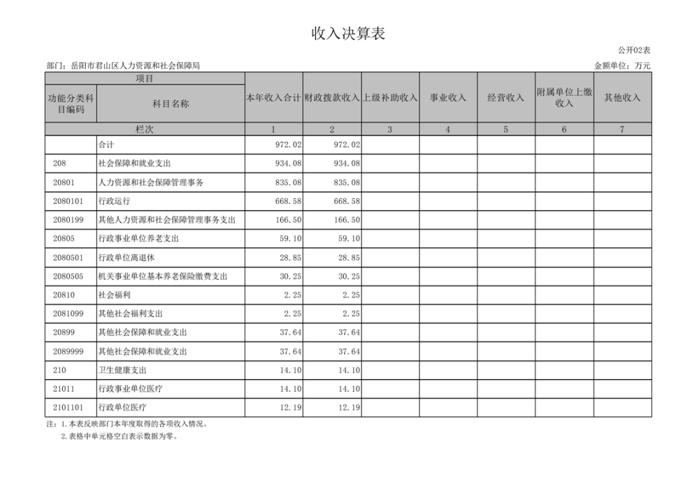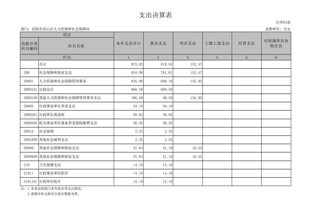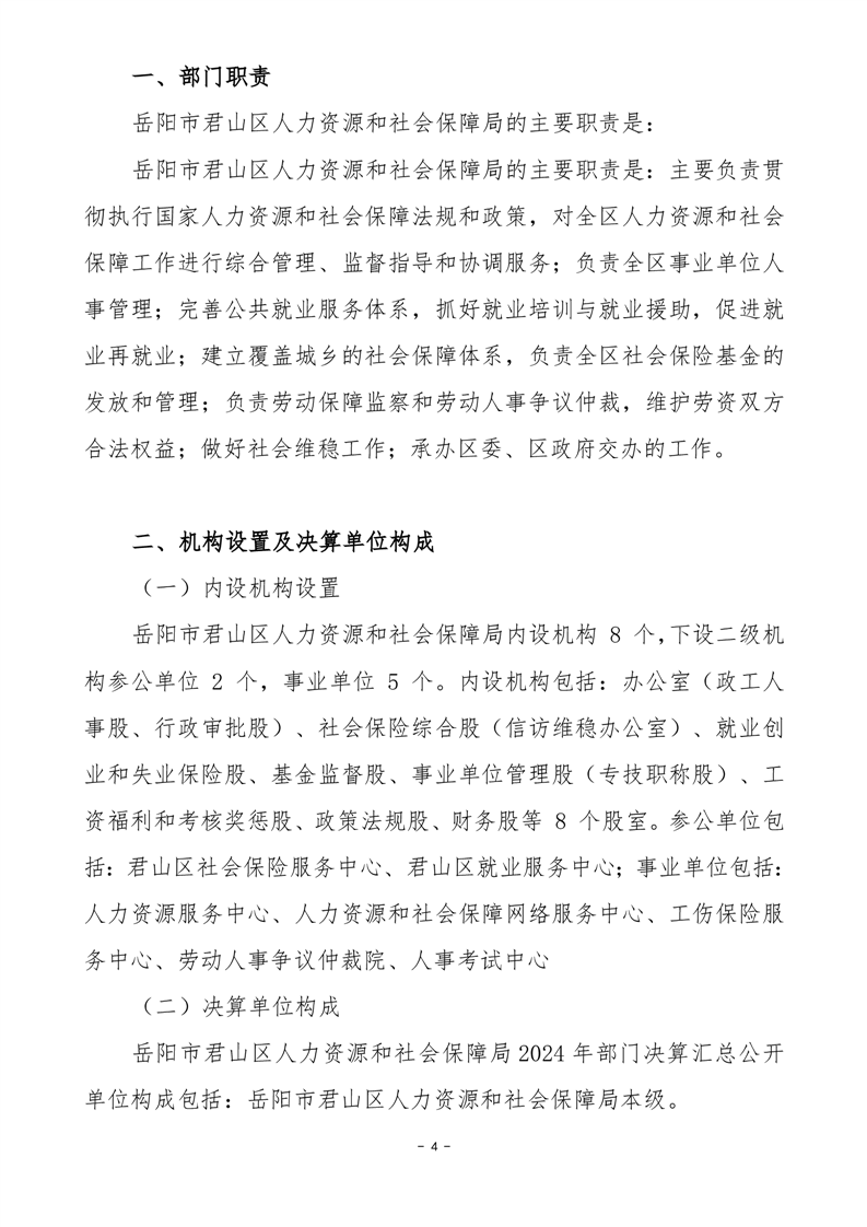 2024年度岳陽市君山區(qū)人力資源和社會(huì)保障局(本級(jí))部門決算公開