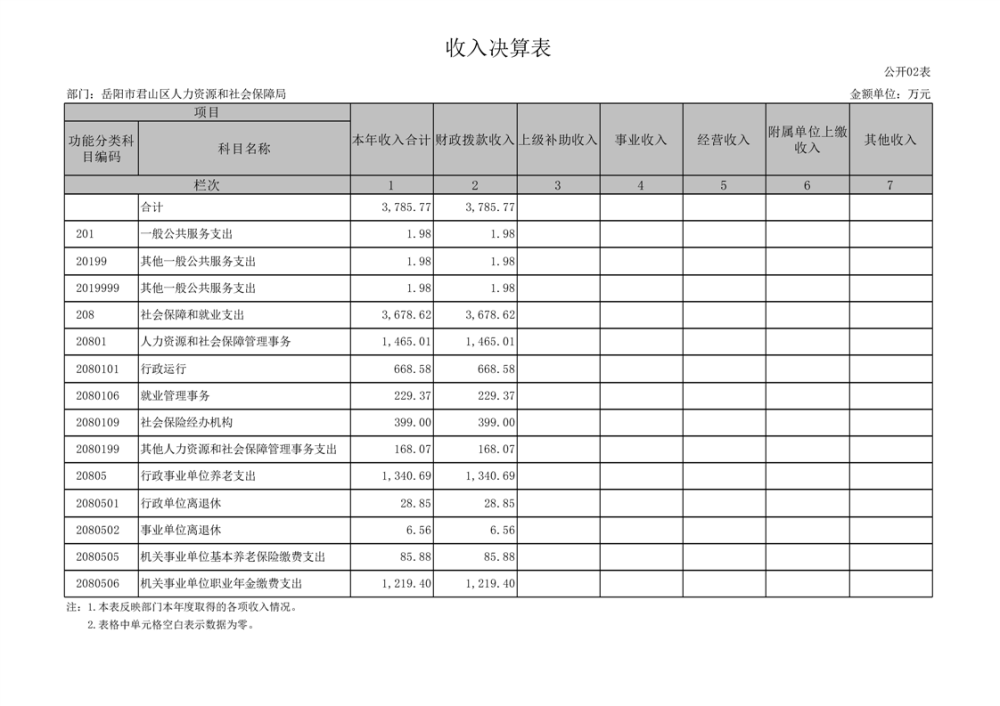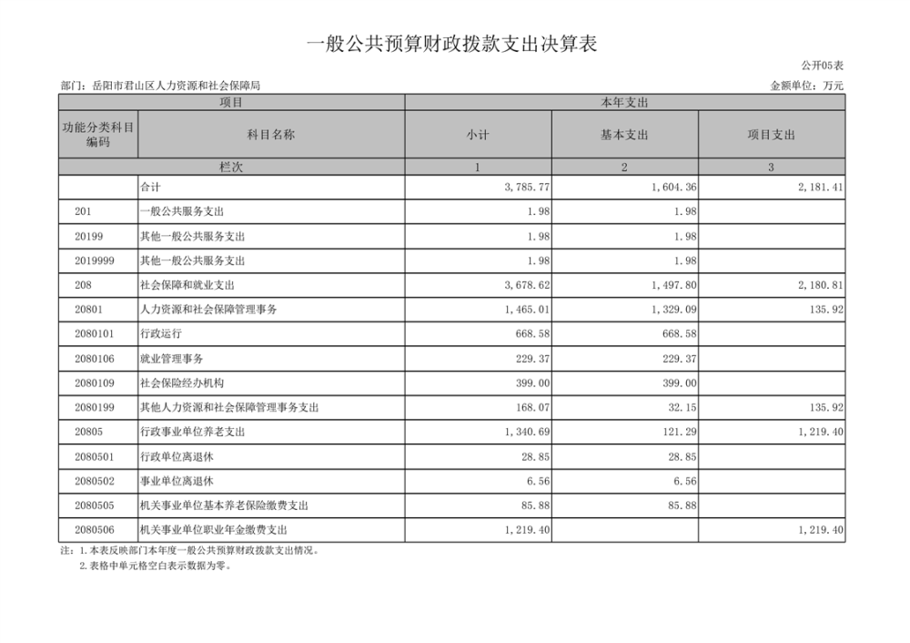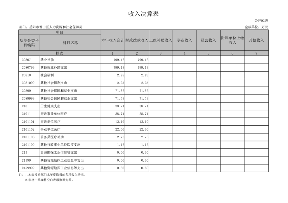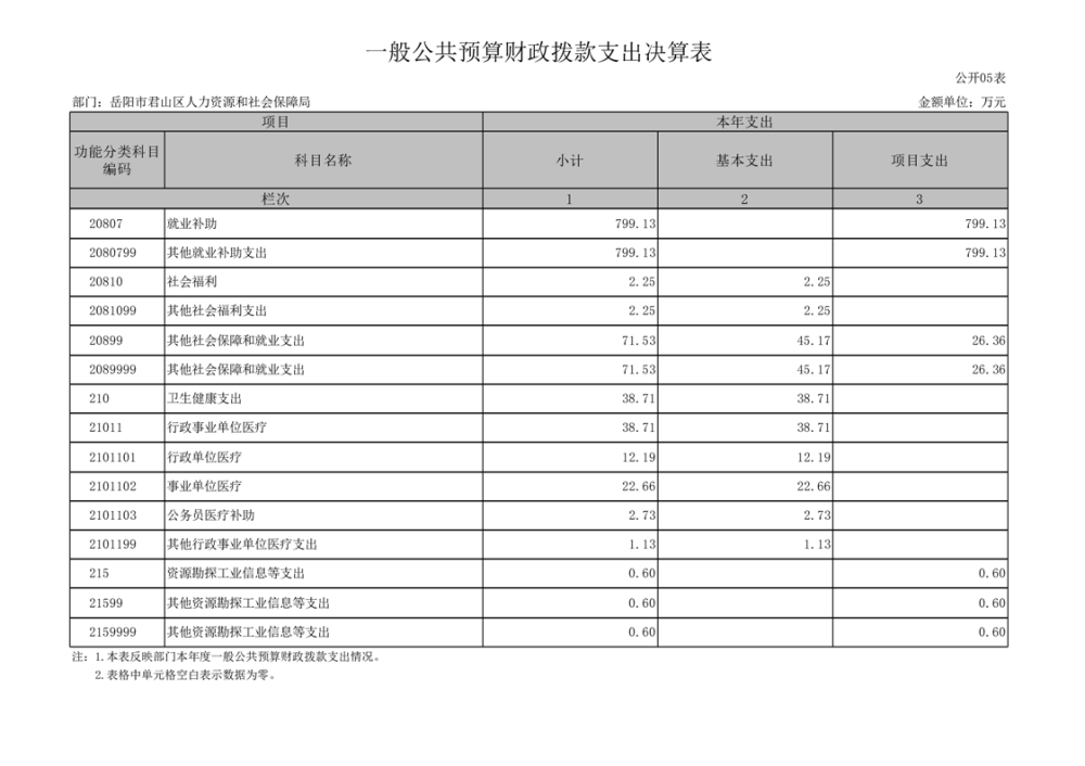 2024年度岳陽市君山區(qū)人力資源和社會保障局(匯總)部門決算公開
