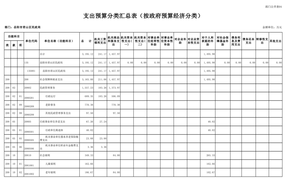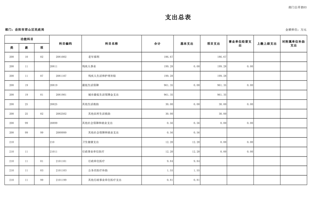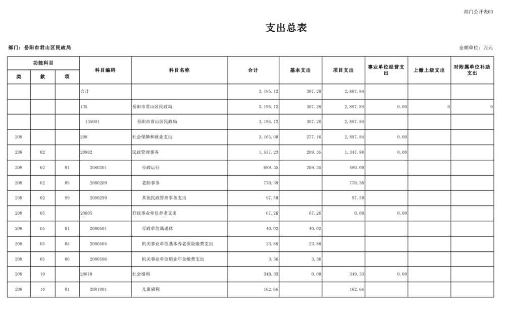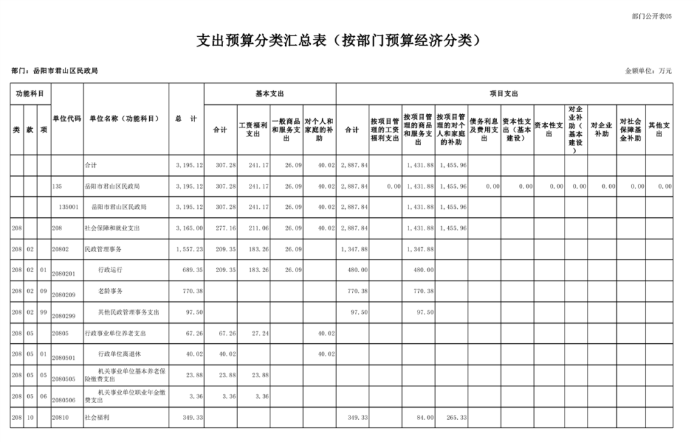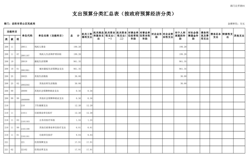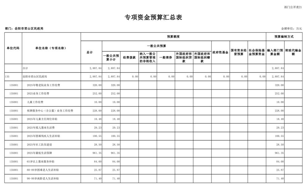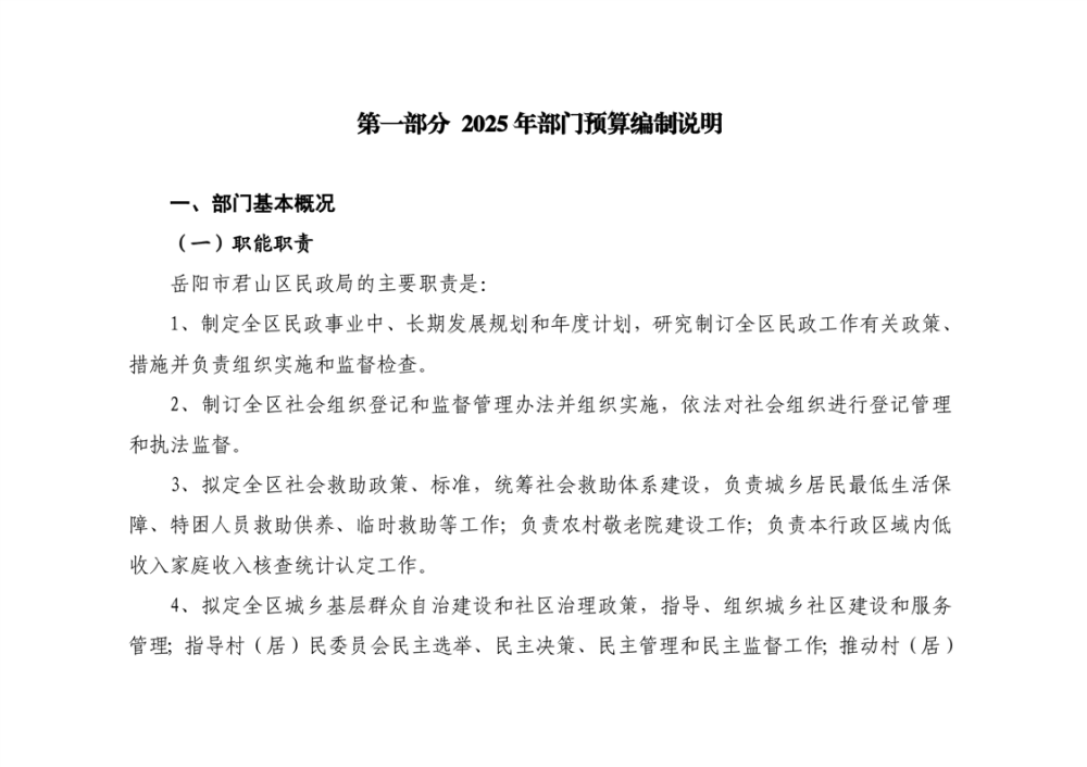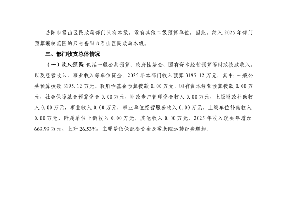 2025年岳陽市君山區(qū)民政局部門預算公開