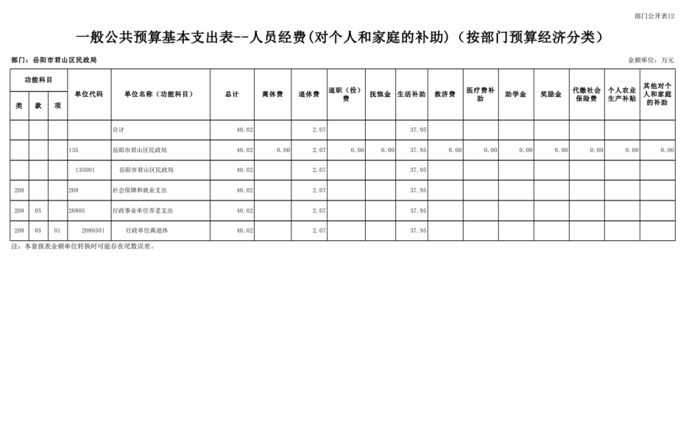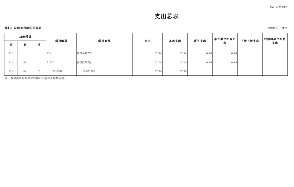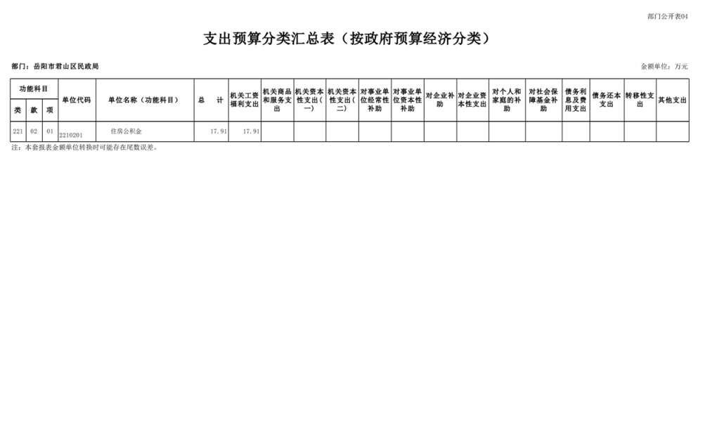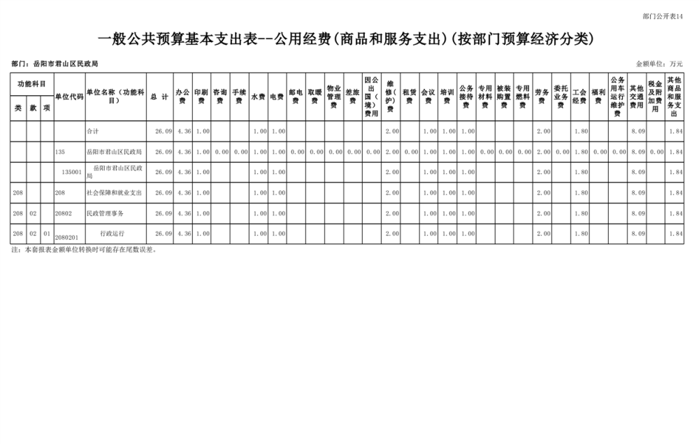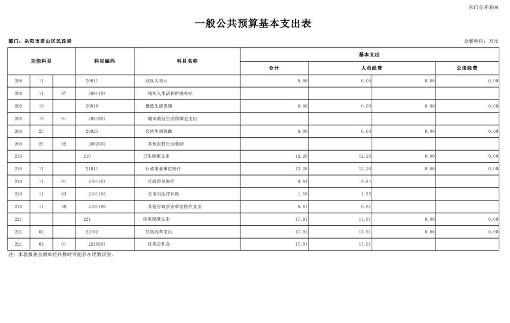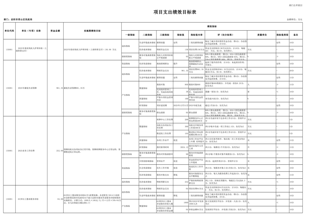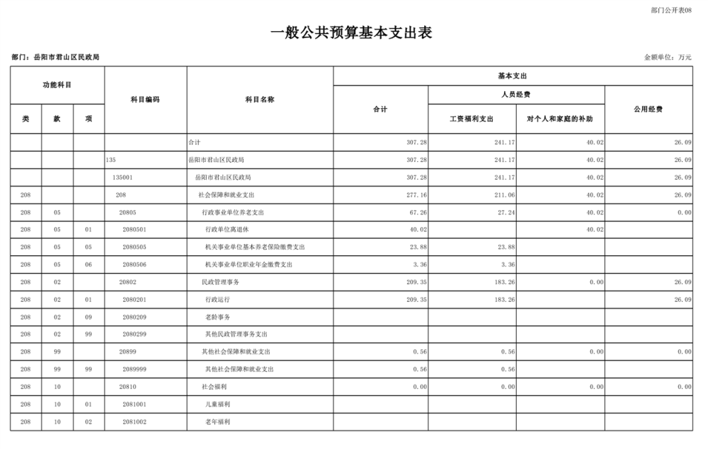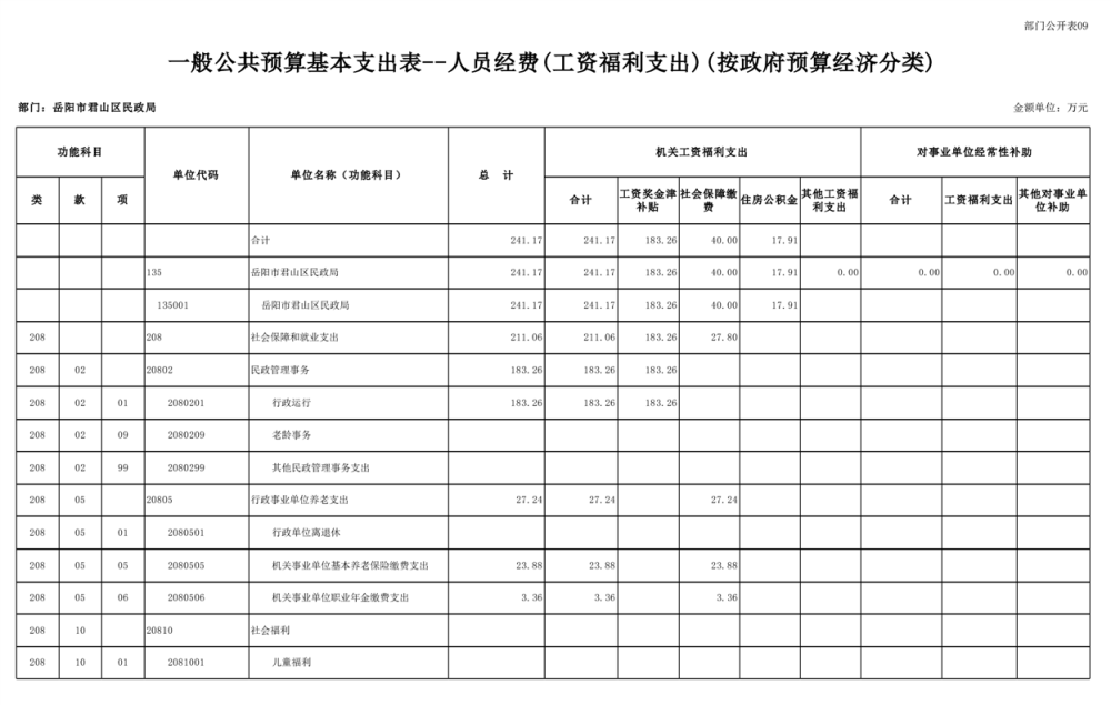 2025年岳陽市君山區(qū)民政局部門預算公開