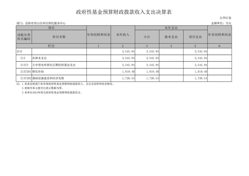 2024年度岳陽市君山區(qū)庫區(qū)移民服務(wù)中心部門決算公開