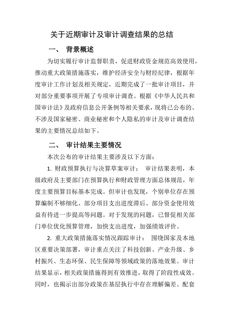關(guān)于近期審計及審計調(diào)查結(jié)果的總結(jié)