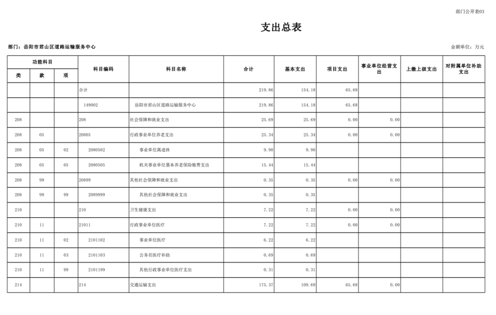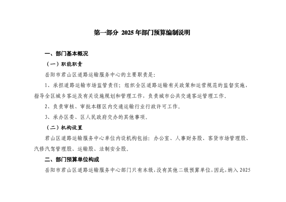 2025年岳陽(yáng)市君山區(qū)道路運(yùn)輸服務(wù)中心部門預(yù)算公開