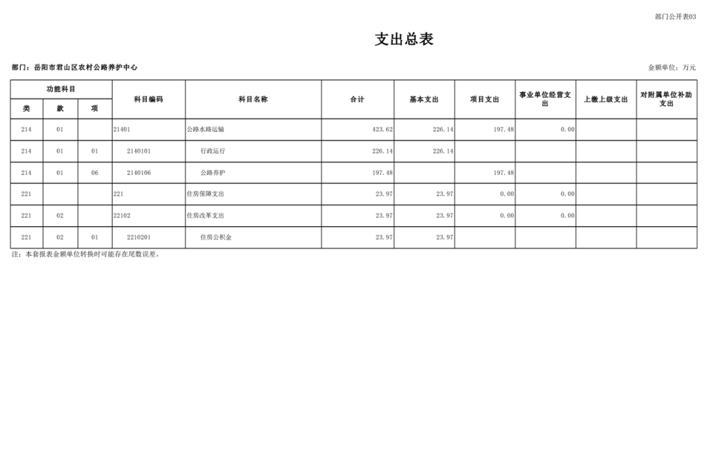 2025年岳陽(yáng)市君山區(qū)農(nóng)村公路養(yǎng)護(hù)中心部門預(yù)算公開