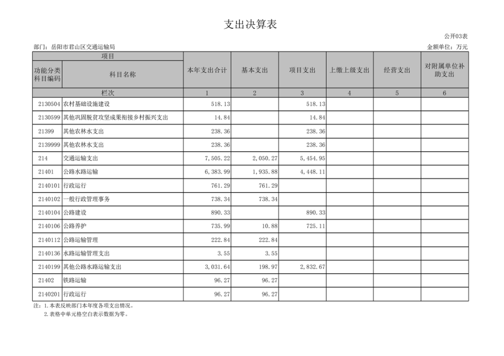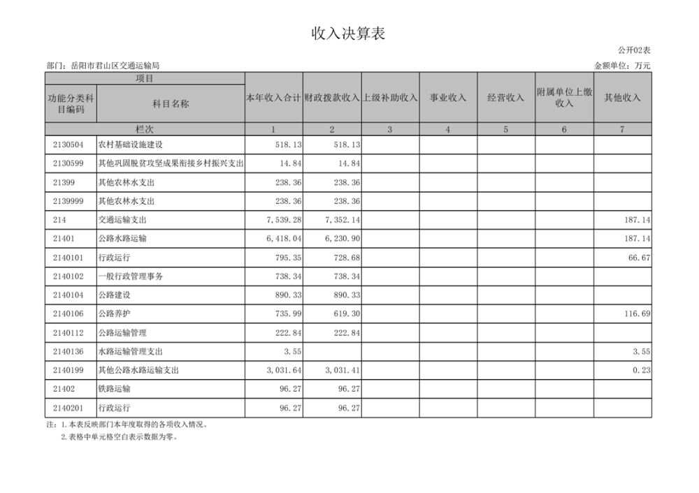 2024年度岳陽(yáng)市君山區(qū)交通運(yùn)輸局(匯總)部門(mén)決算公開(kāi)