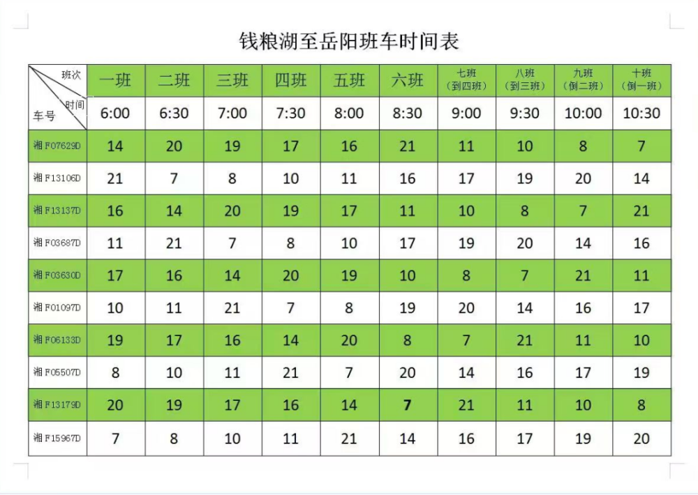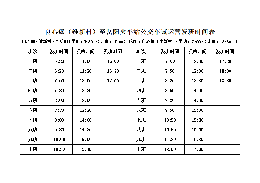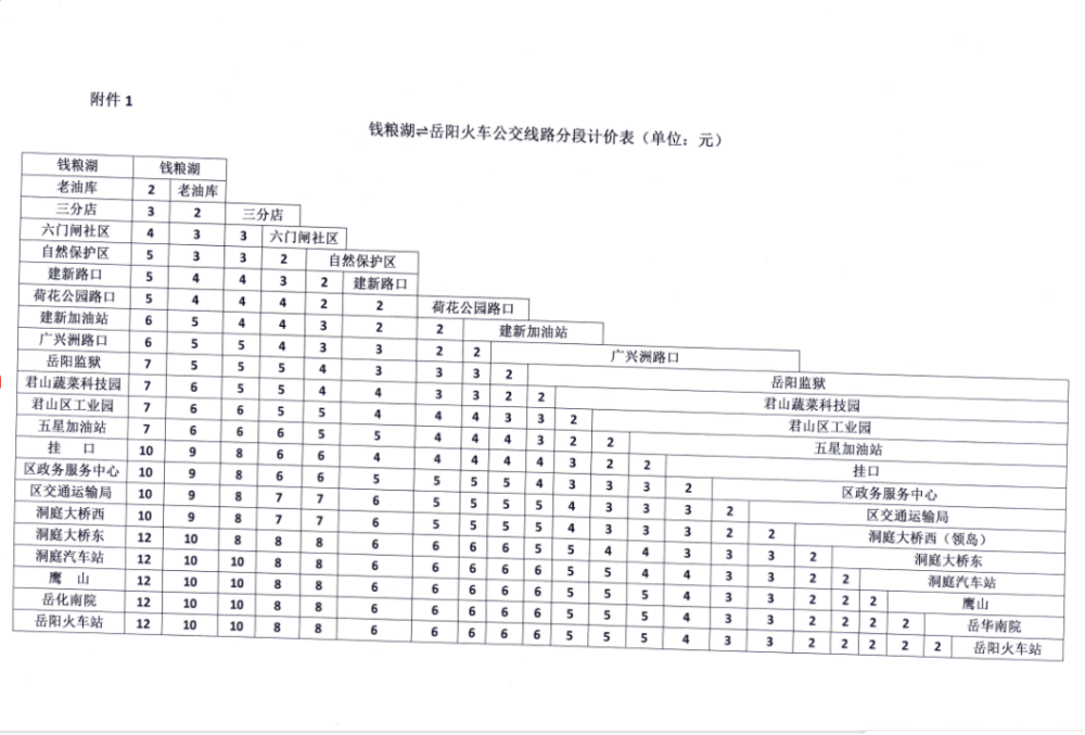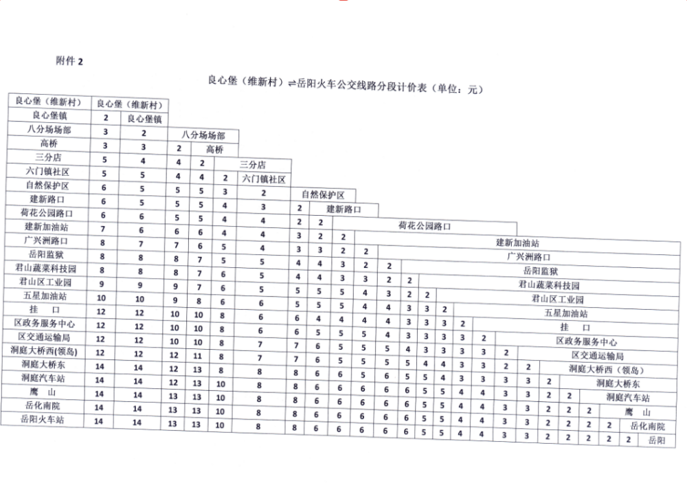 2025年君山區(qū)公交線路的車次分段價位表及運營時間表
