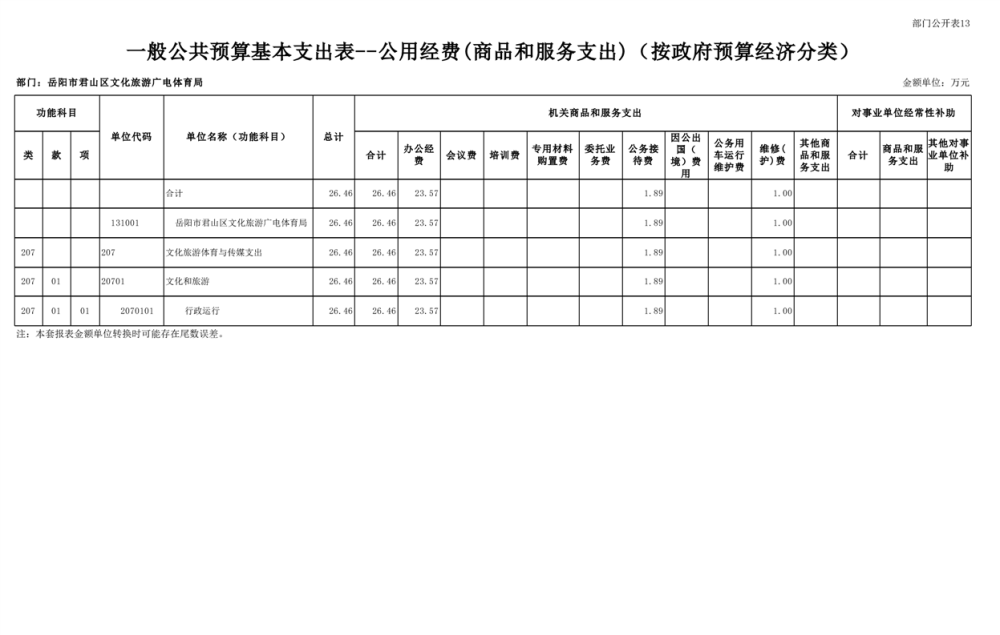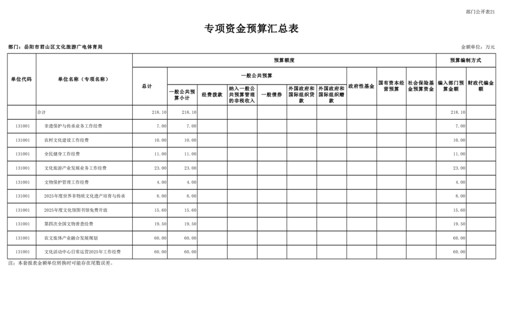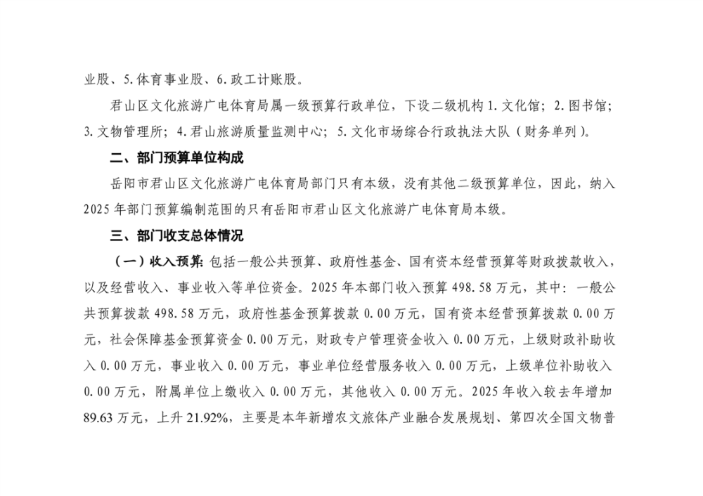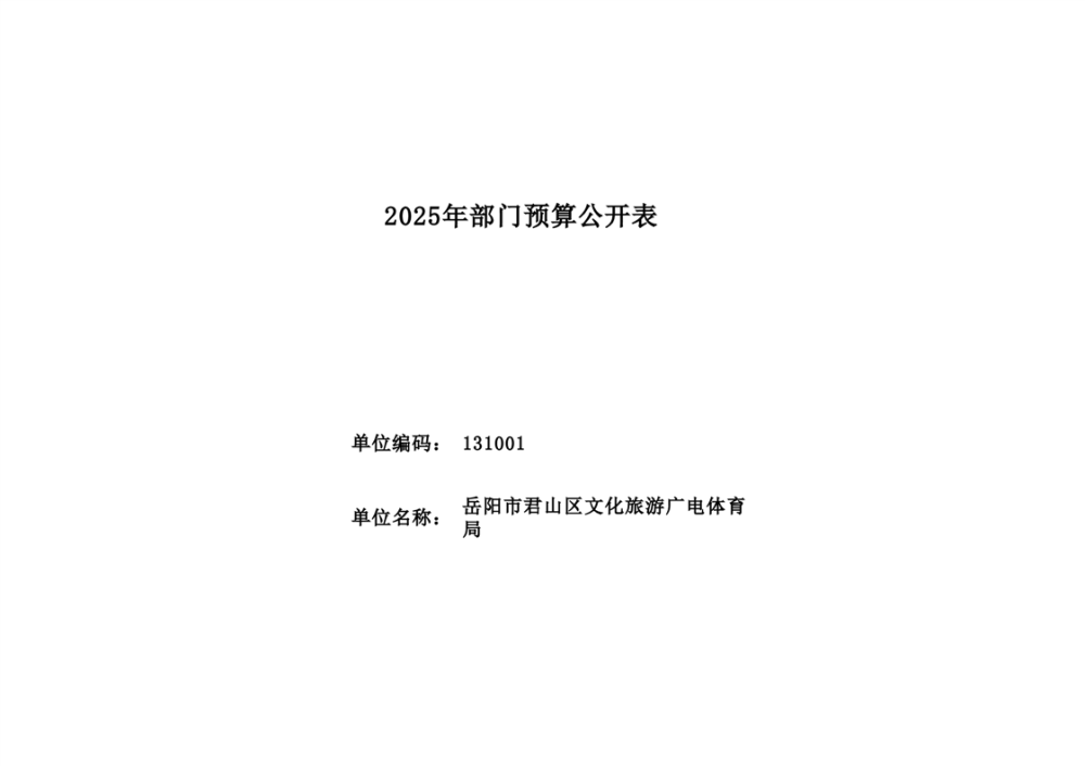 2025年岳陽市君山區(qū)文化旅游廣電體育局(本級(jí))部門預(yù)算公開
