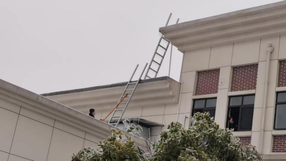 檢查發(fā)現(xiàn),受近期凍雨天氣影響,區(qū)文化活動中心屋頂鋼板結(jié)構(gòu)已全部被冰雪覆蓋,存在一定安全隱患。為保護國家財產(chǎn)與人員生命安全,區(qū)文化活動中心立即聯(lián)系消防部門協(xié)商處理并決定暫時停止會務(wù)接待工作。