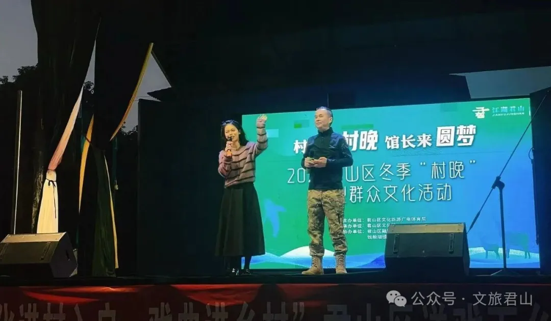 初冬微寒,文家灣村的夜晚卻熱氣升騰。11月30日晚,“村民導(dǎo)村晚·館長(zhǎng)來(lái)圓夢(mèng)”2025君山區(qū)冬季“村晚”大型群眾文化活動(dòng)在這里歡樂(lè)上演。整場(chǎng)晚會(huì)由村民自編自導(dǎo),文化館長(zhǎng)專業(yè)指導(dǎo),村支書親自主持,退伍老兵傾情助演,共同繪就了一幅文旅融合與鄉(xiāng)村振興的動(dòng)人畫卷。
