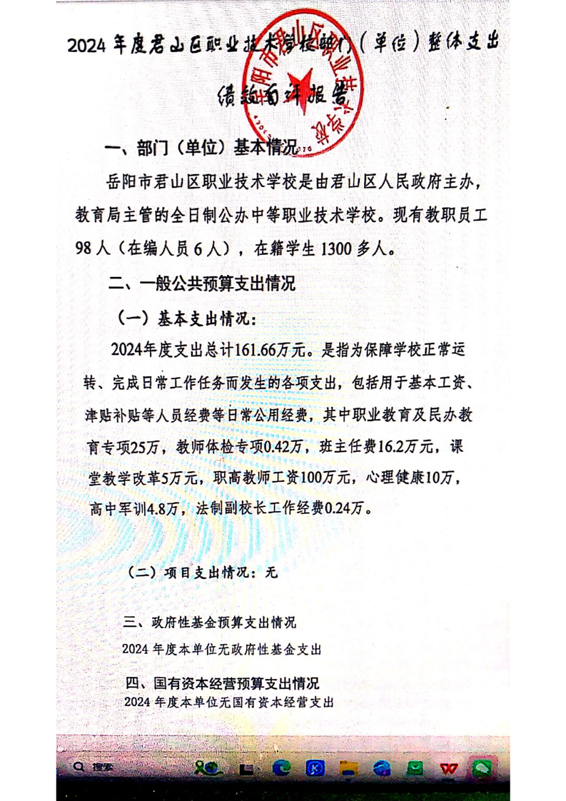 2024年度岳陽市君山區(qū)職業(yè)技術(shù)學(xué)校部門決算公開