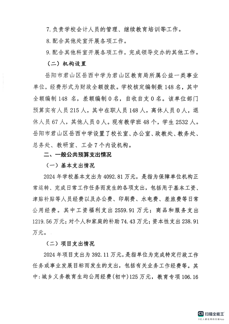 2024年度岳陽市君山區(qū)岳西中學(xué)部門決算公開