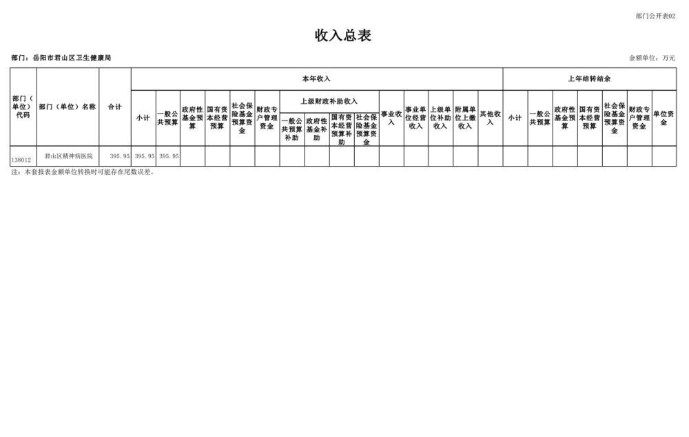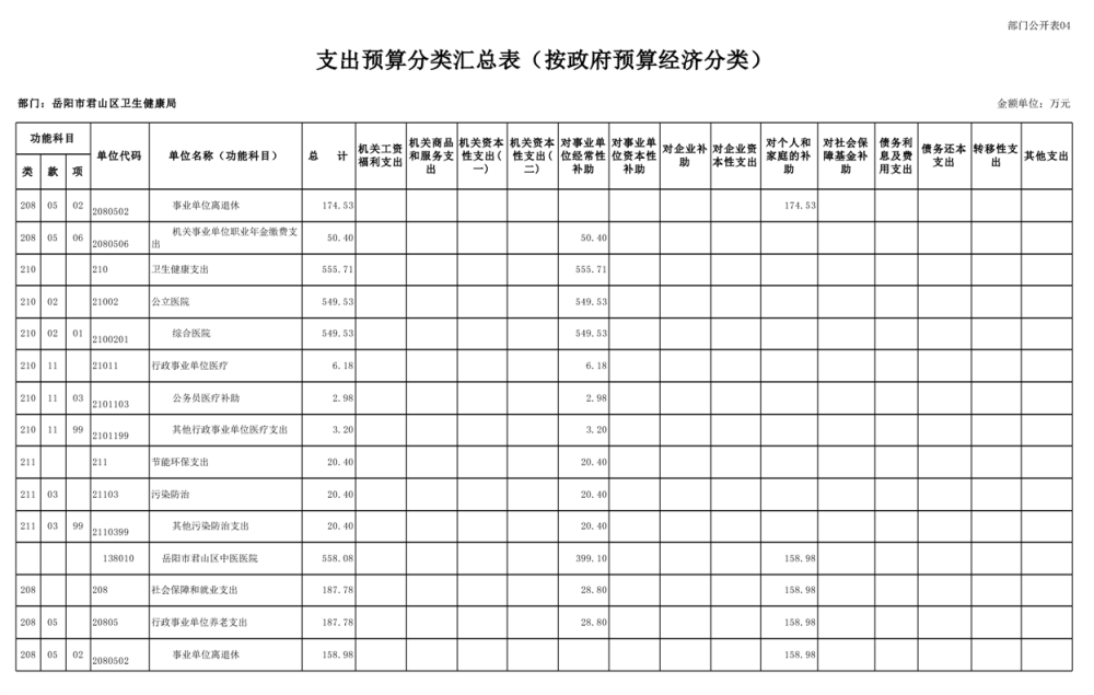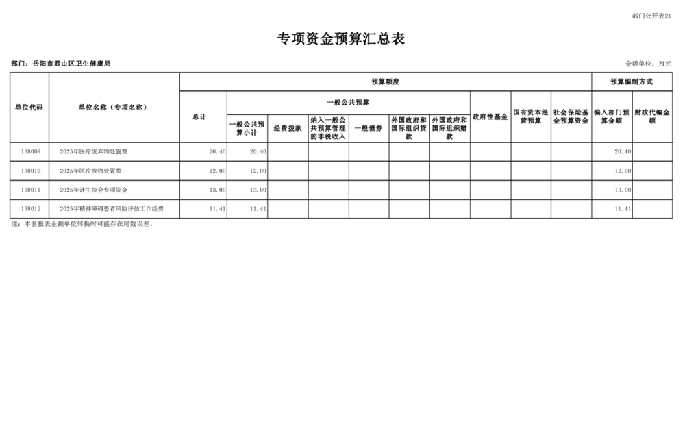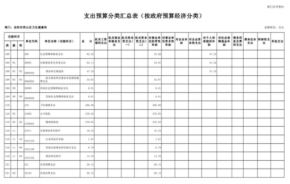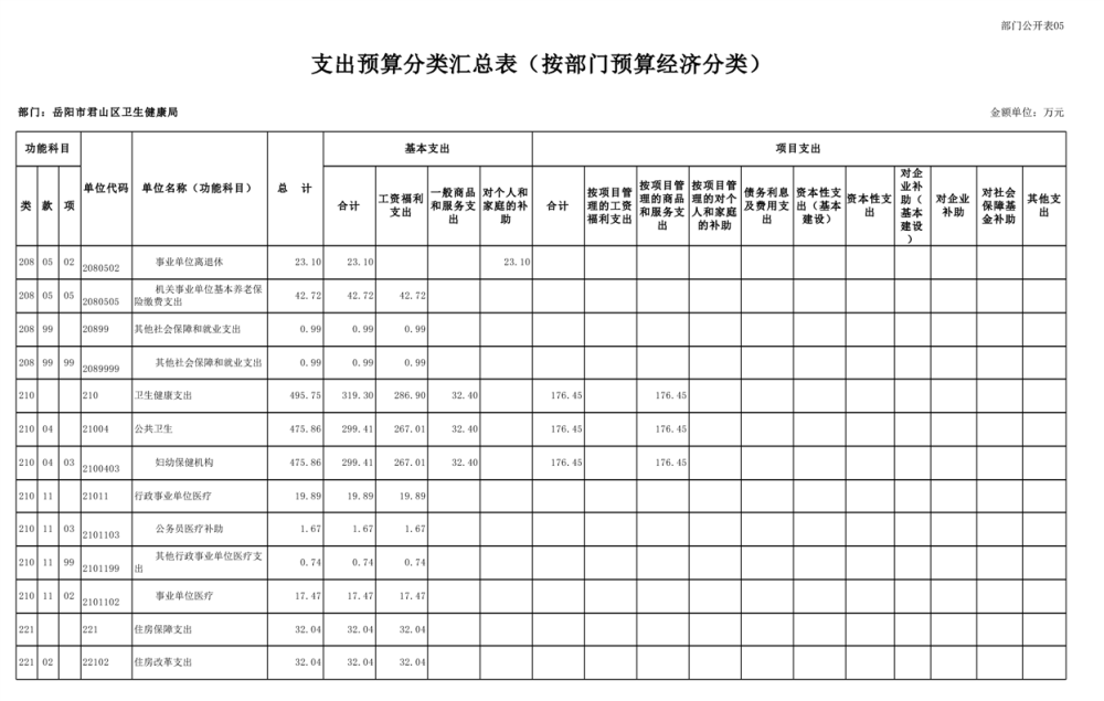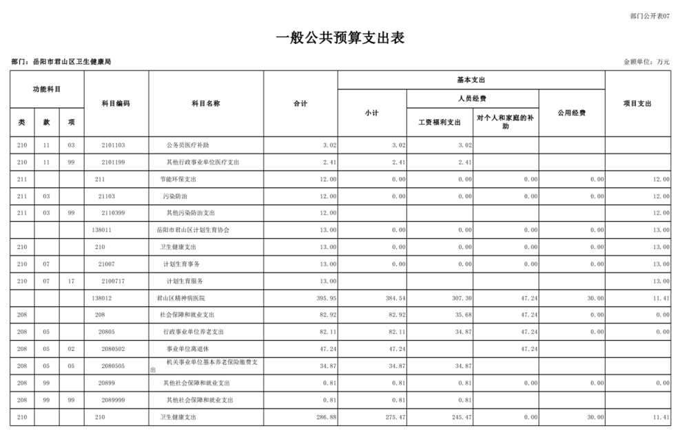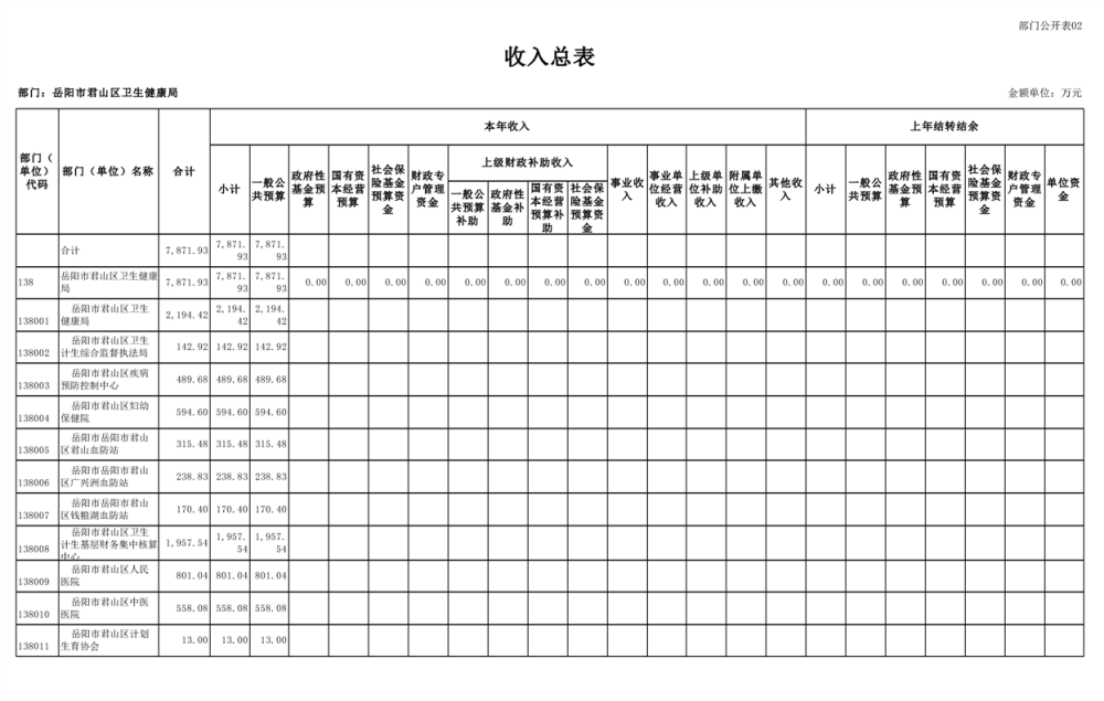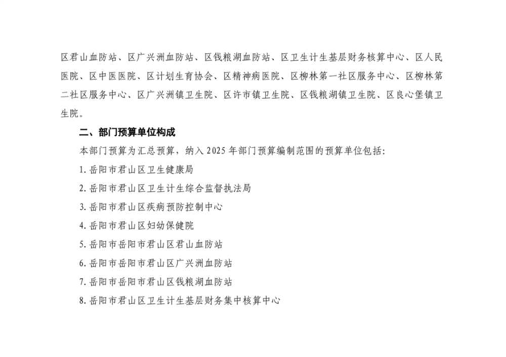 2025年岳陽市君山區(qū)衛(wèi)生健康局(部門)預算公開