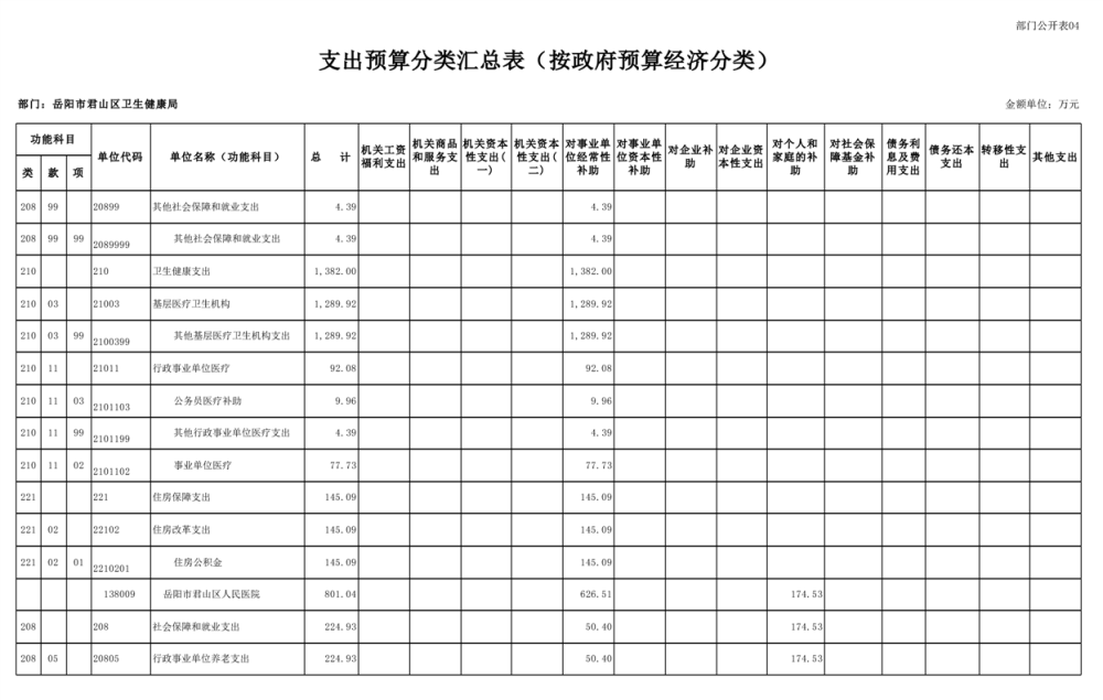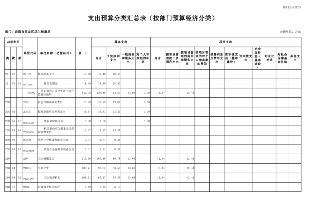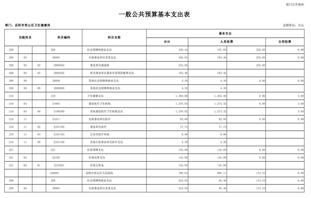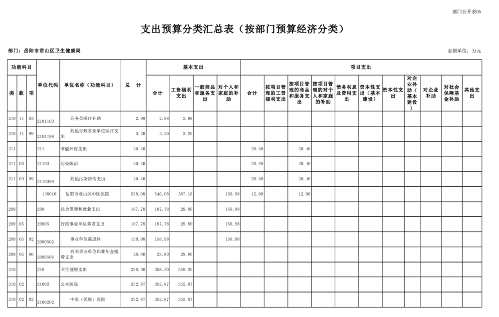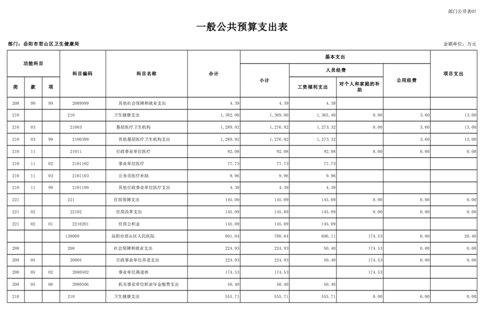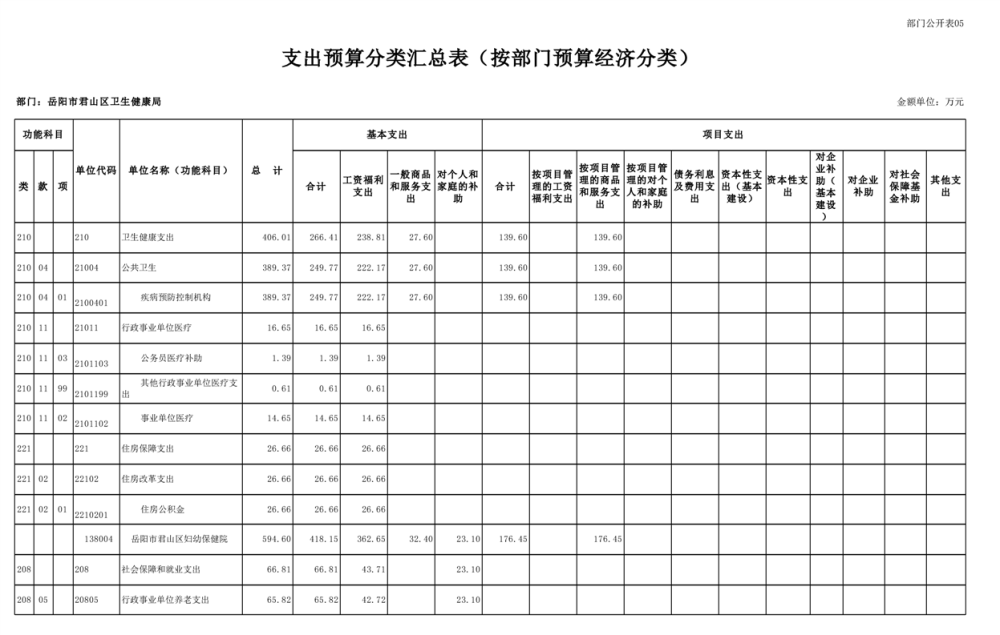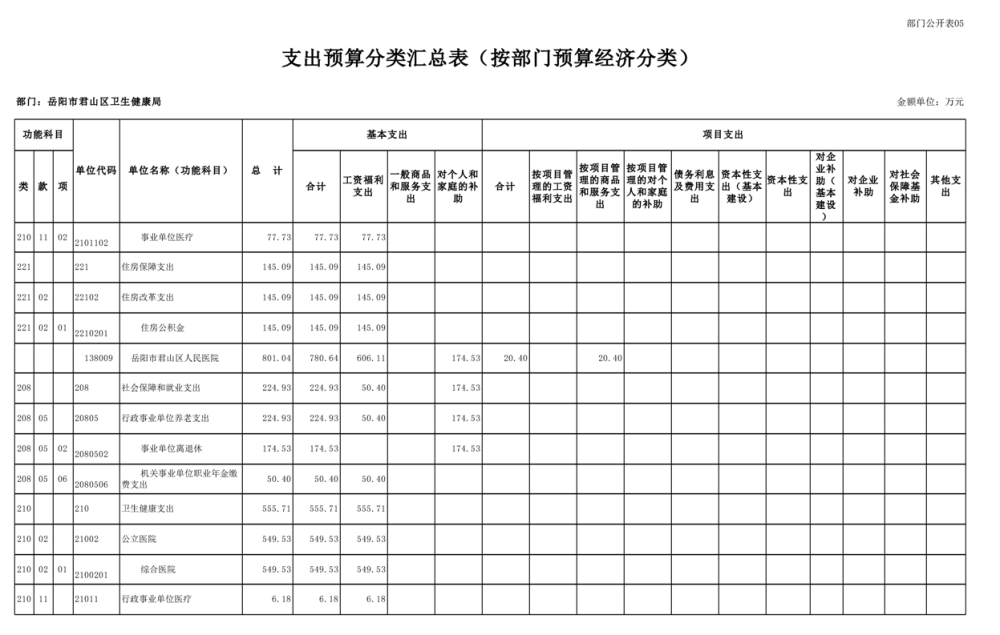 2025年岳陽市君山區(qū)衛(wèi)生健康局(部門)預算公開