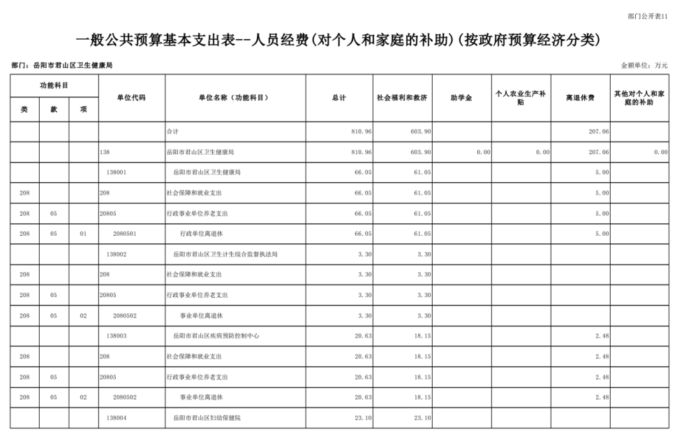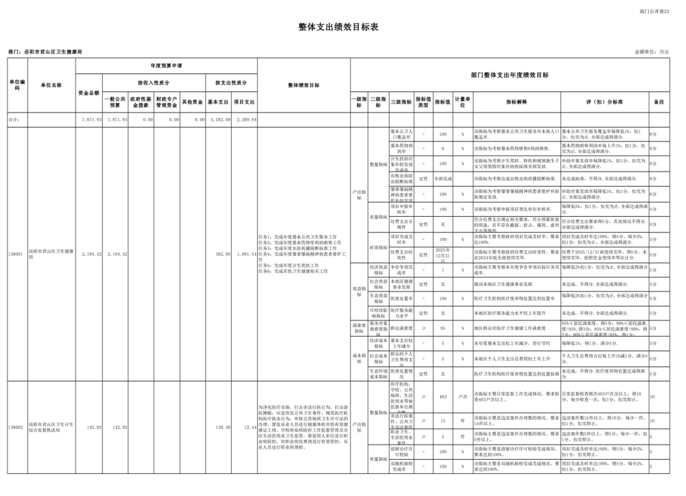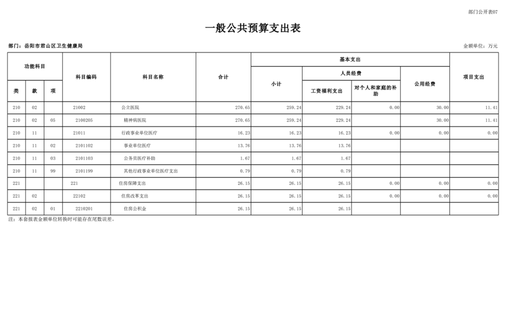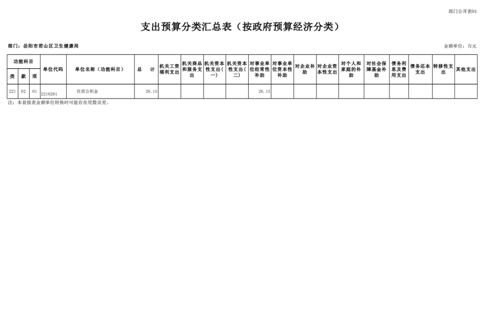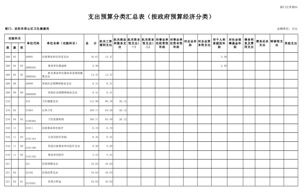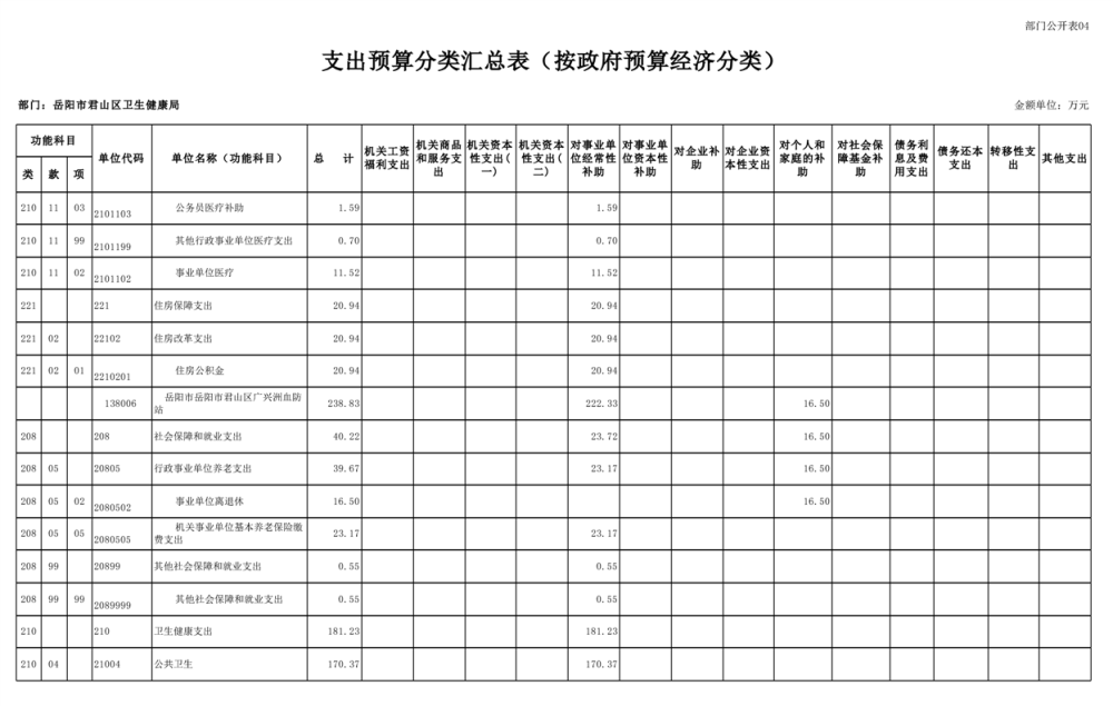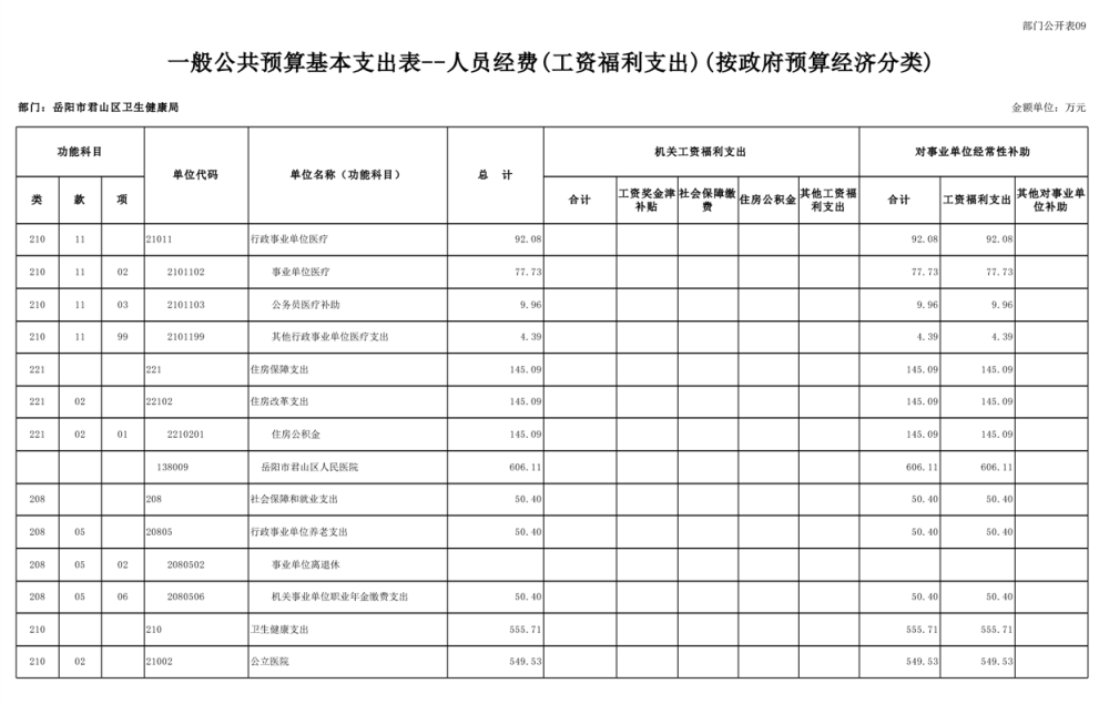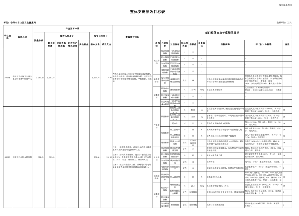 2025年岳陽市君山區(qū)衛(wèi)生健康局(部門)預算公開