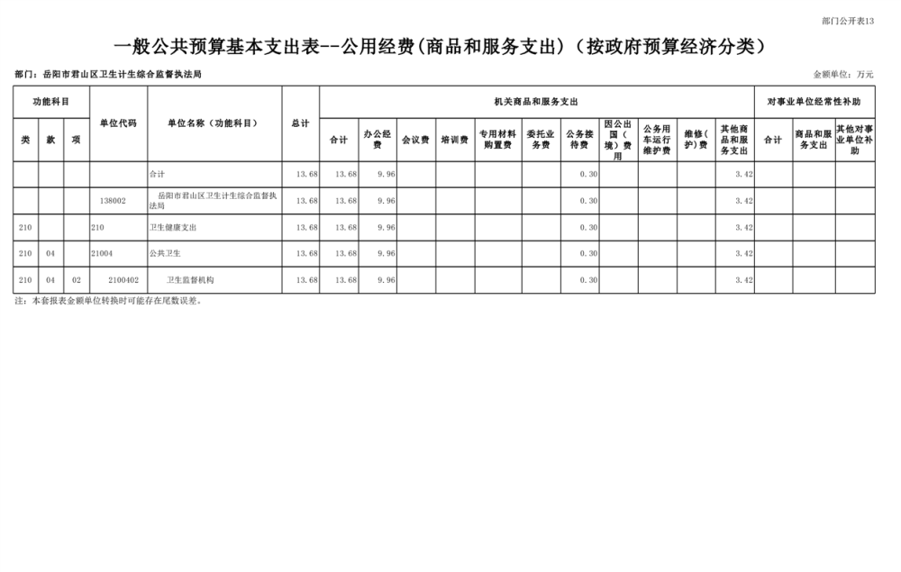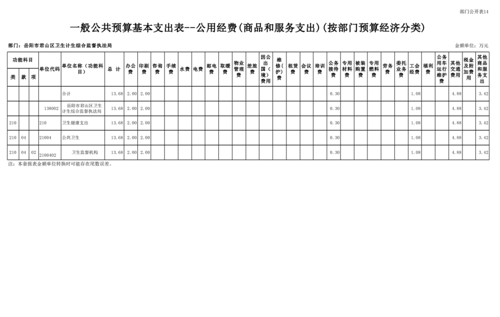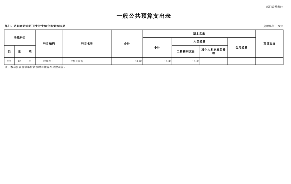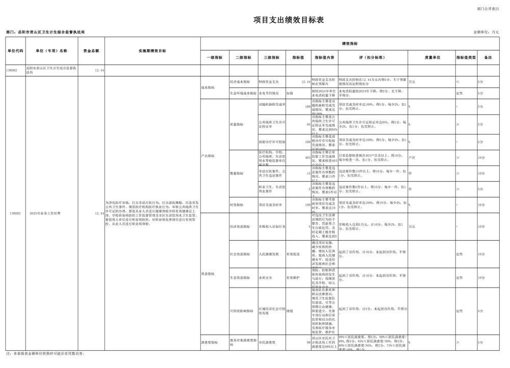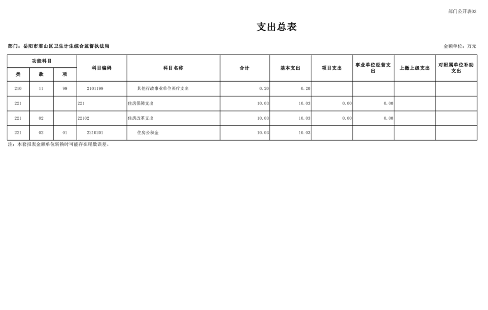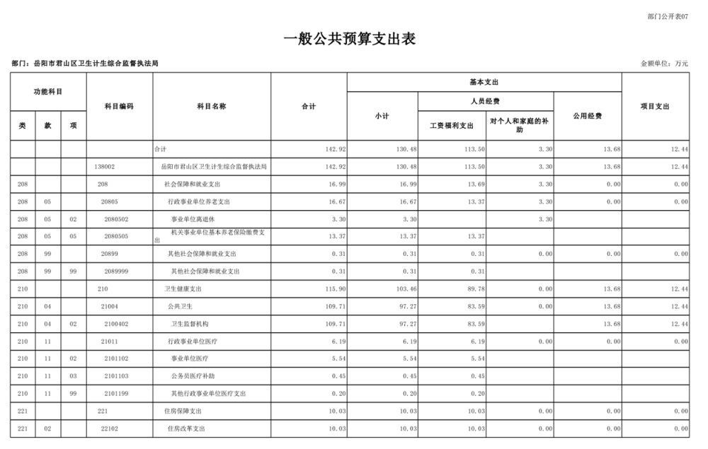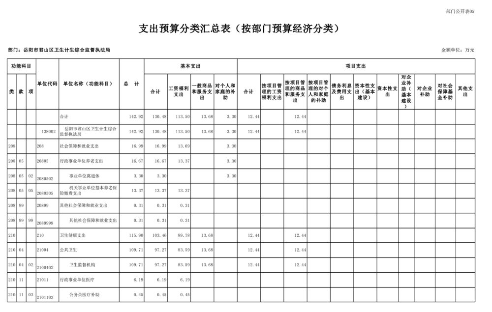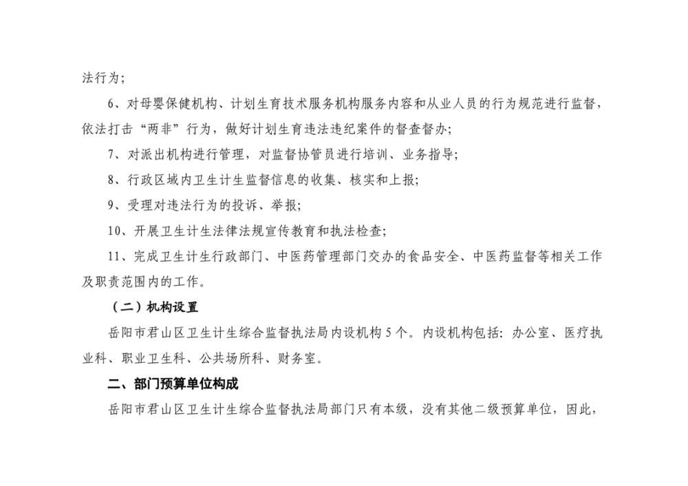 2025年岳陽市君山區(qū)衛(wèi)生計(jì)生綜合監(jiān)督執(zhí)法局部門預(yù)算公開