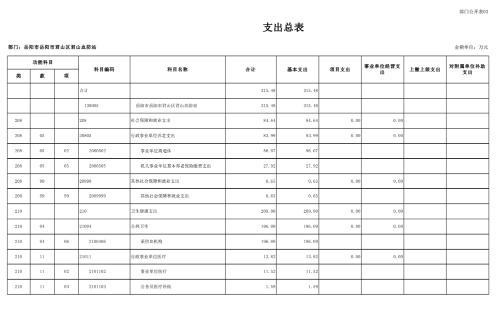 2025年岳陽市君山區(qū)君山血防站部門預算公開