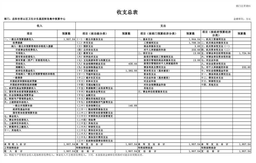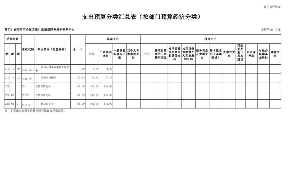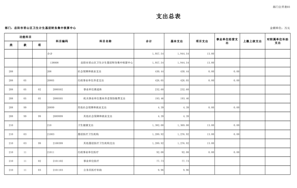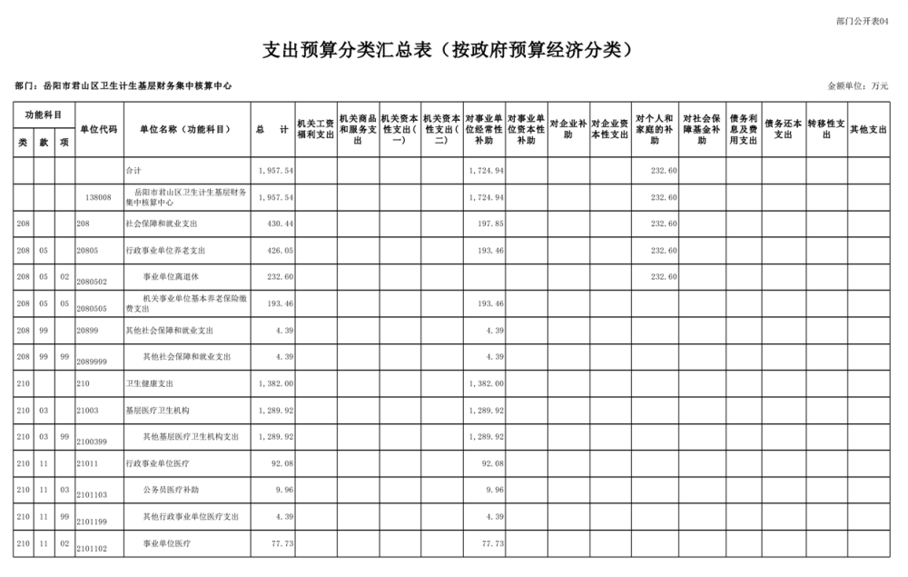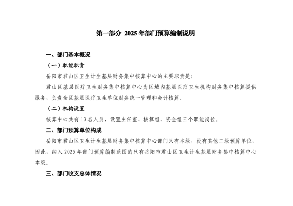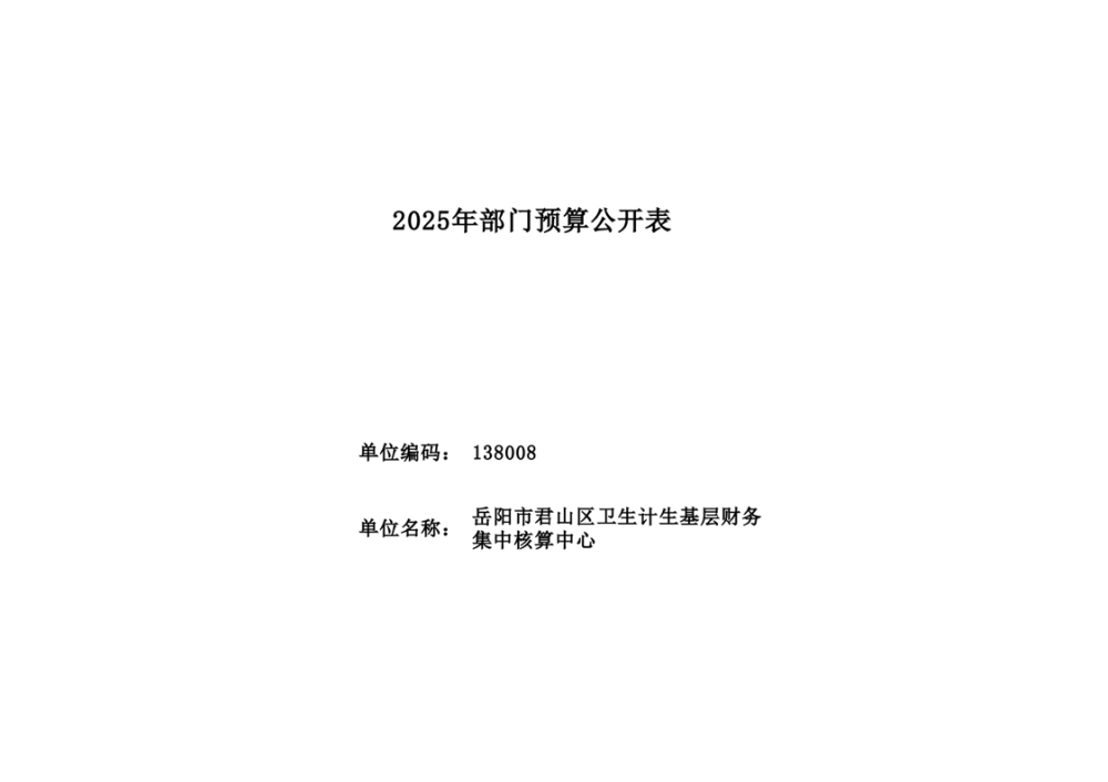2025年岳陽(yáng)市君山區(qū)衛(wèi)生計(jì)生基層財(cái)務(wù)集中核算中心部門預(yù)算公開(kāi)