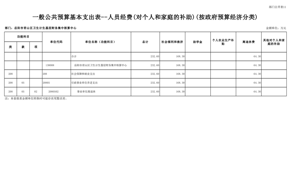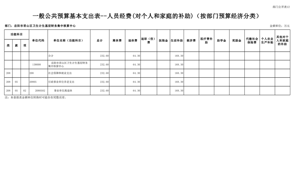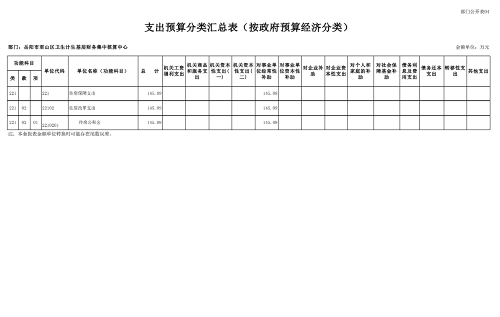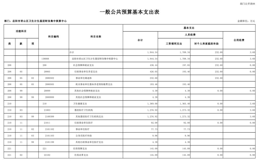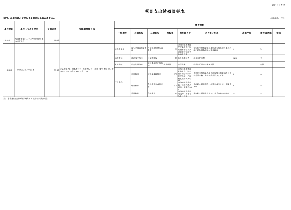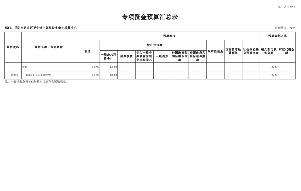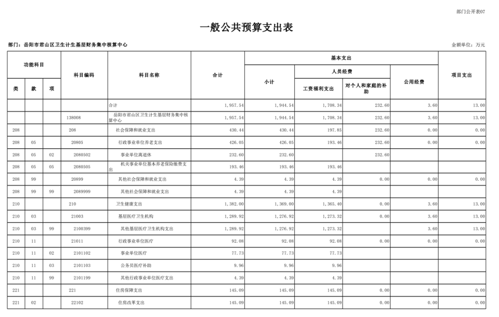 2025年岳陽(yáng)市君山區(qū)衛(wèi)生計(jì)生基層財(cái)務(wù)集中核算中心部門預(yù)算公開(kāi)