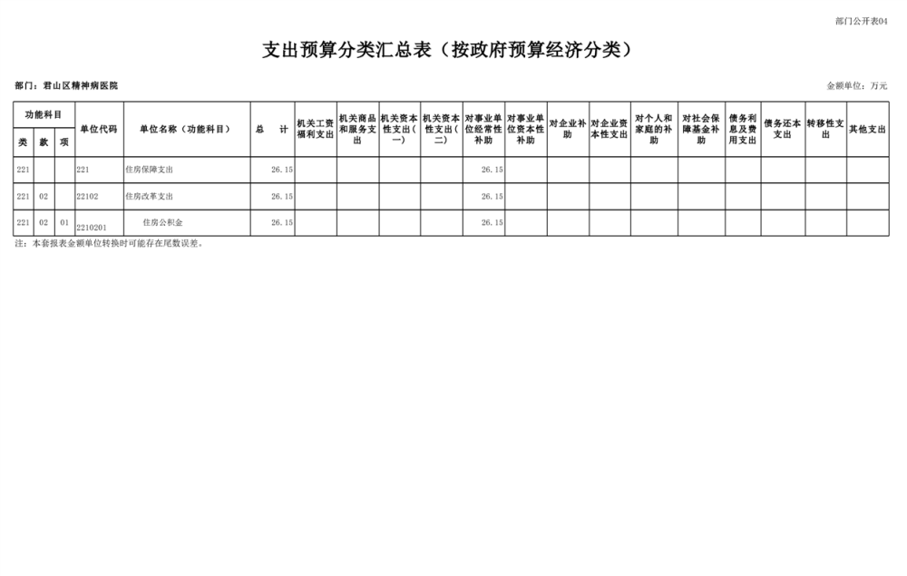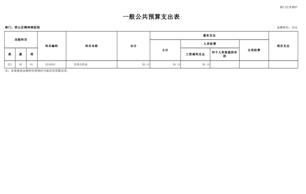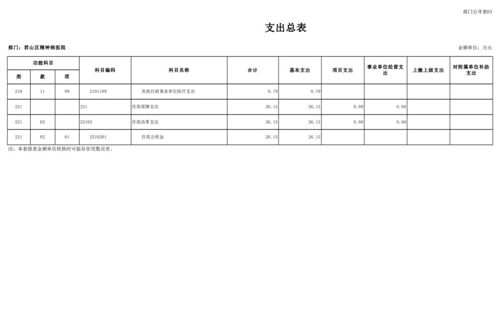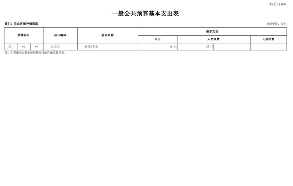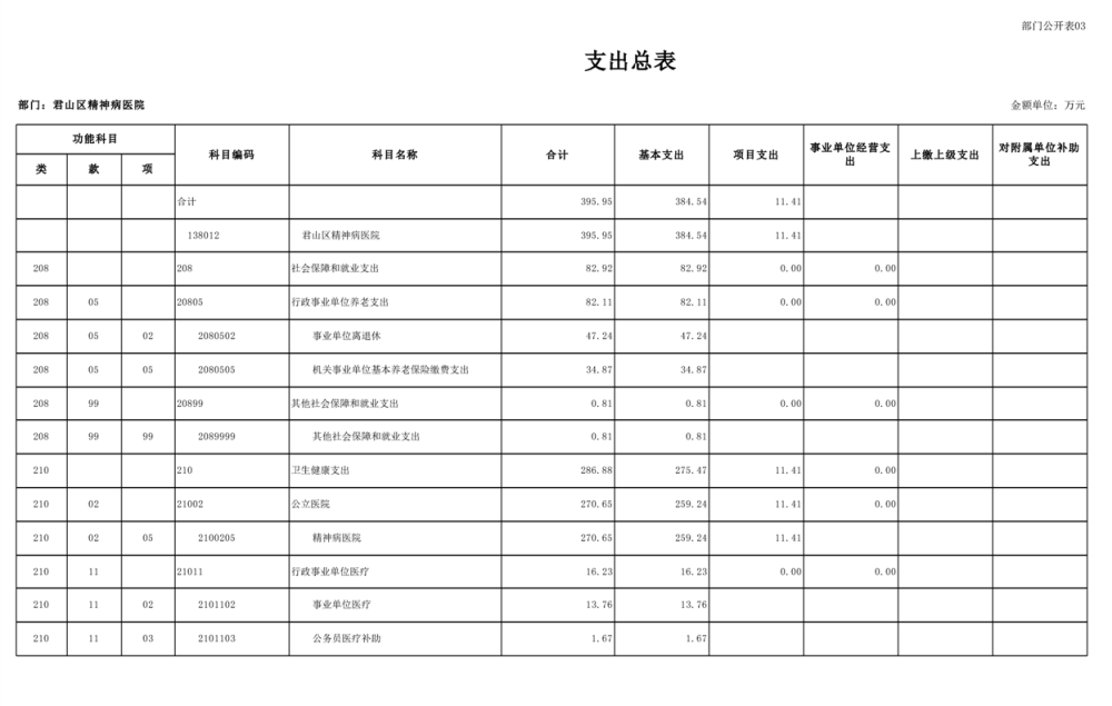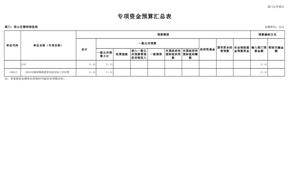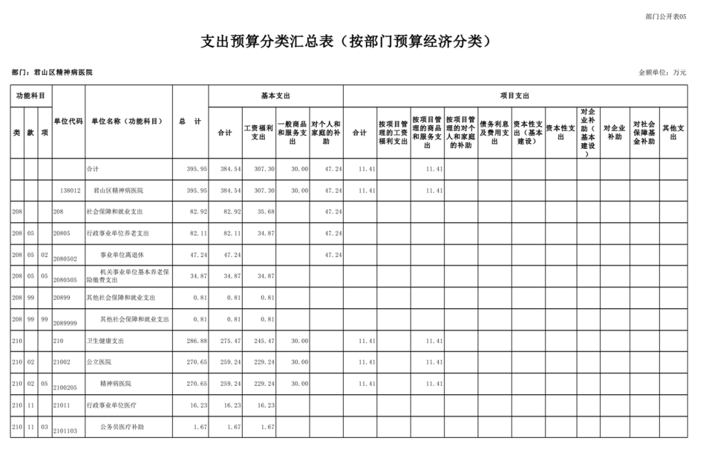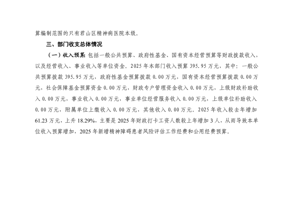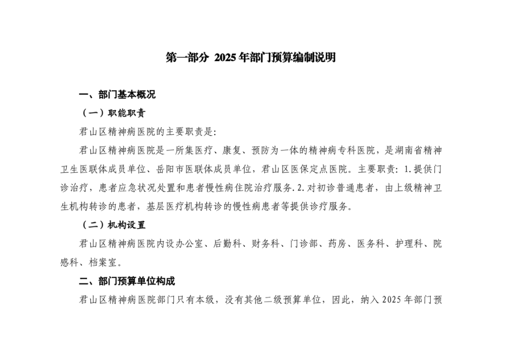 2025年君山區(qū)精神病醫(yī)院部門預(yù)算公開