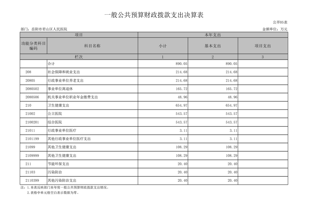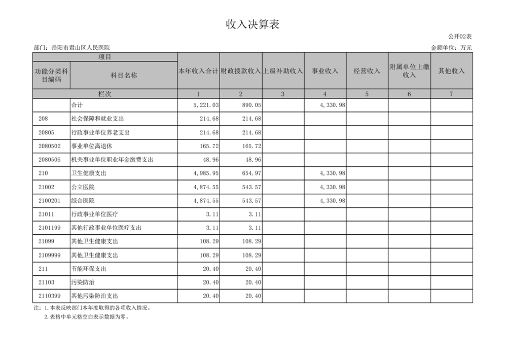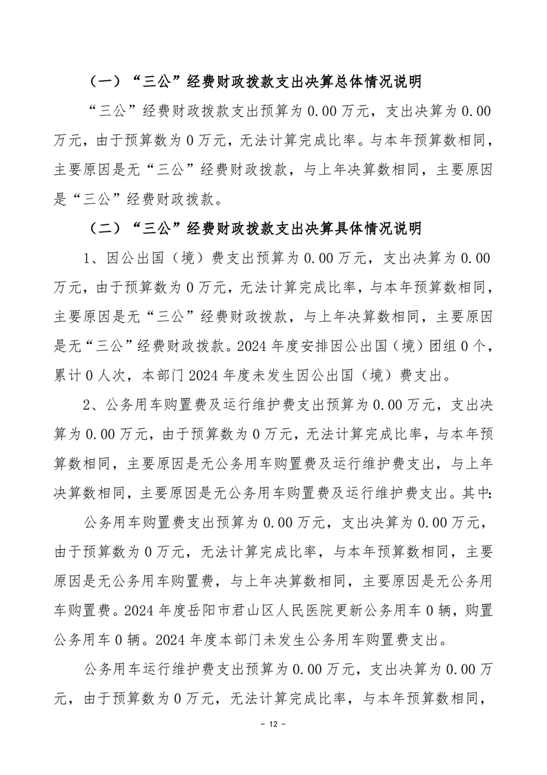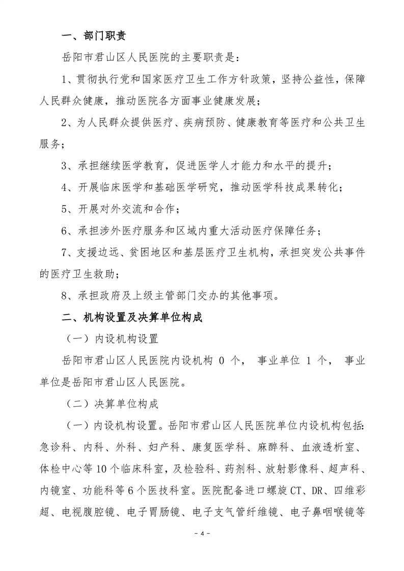 2024年度岳陽市君山區(qū)人民醫(yī)院部門決算公開