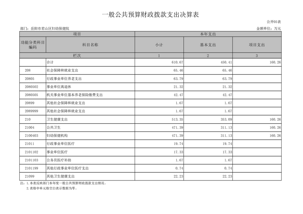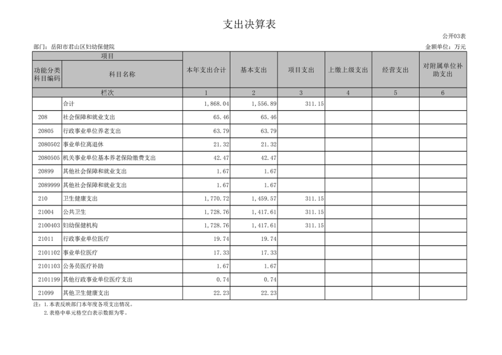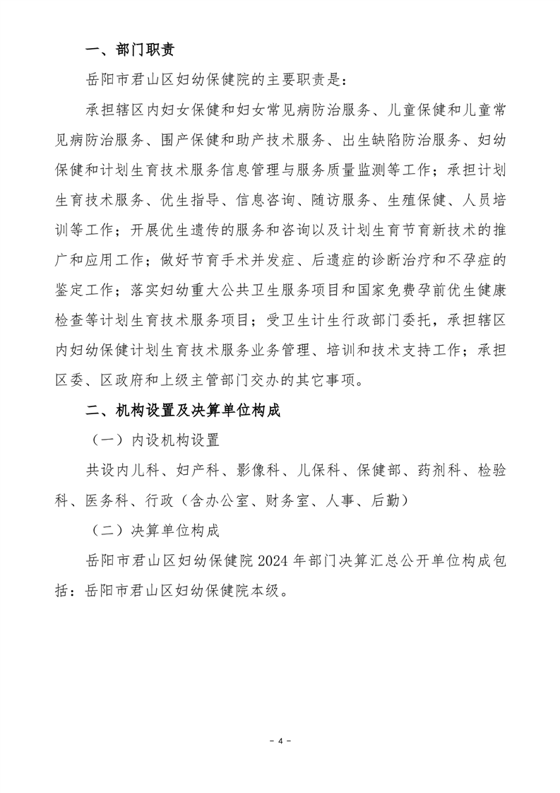2024年度岳陽市君山區(qū)婦幼保健院部門決算公開
