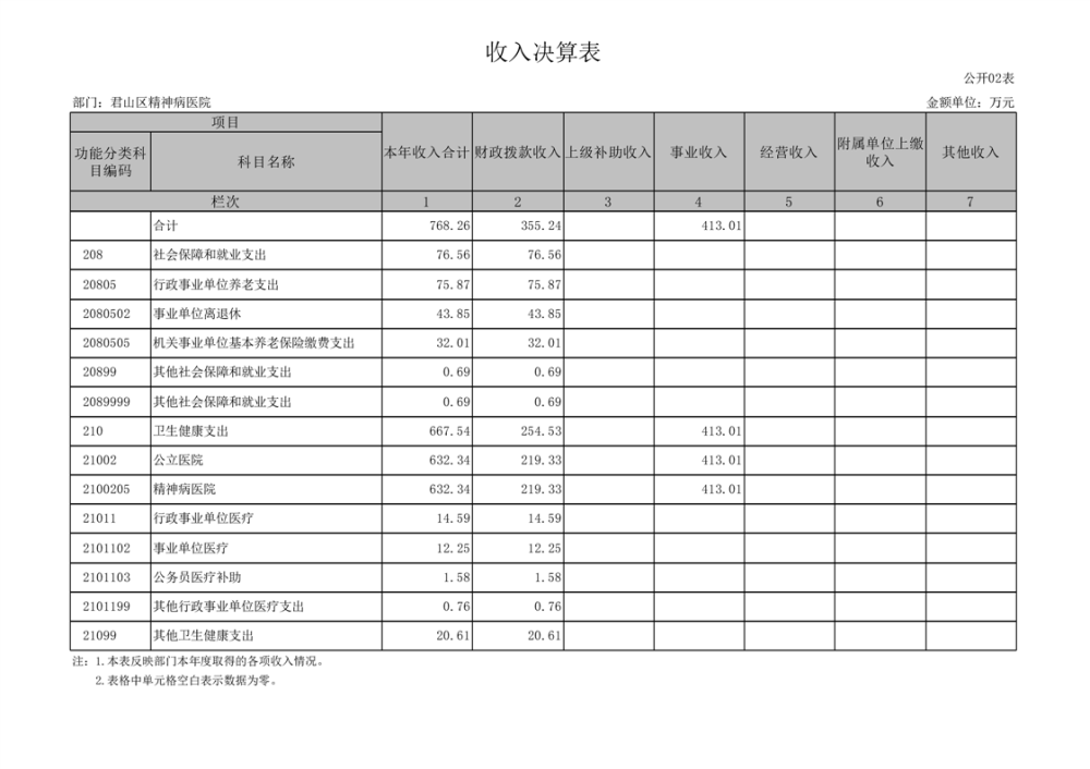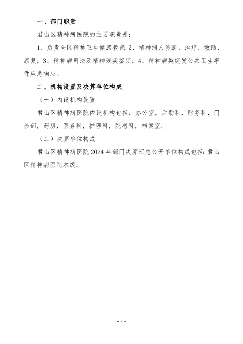 2024年度君山區(qū)精神病醫(yī)院部門決算公開