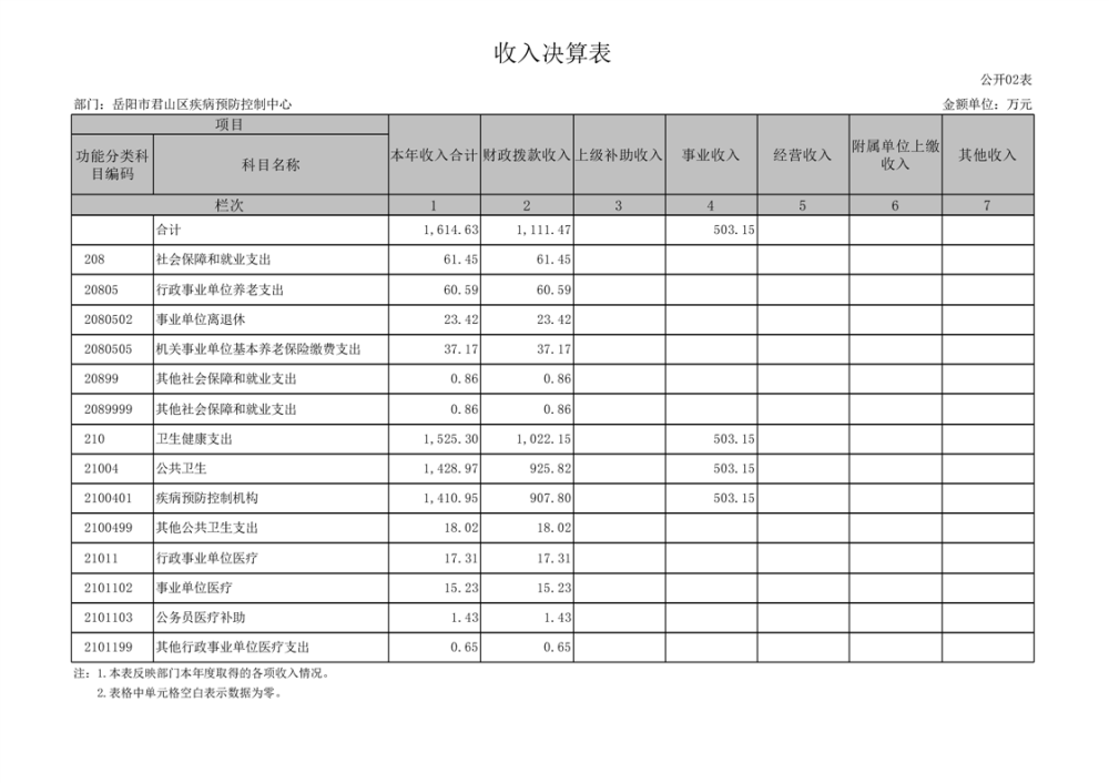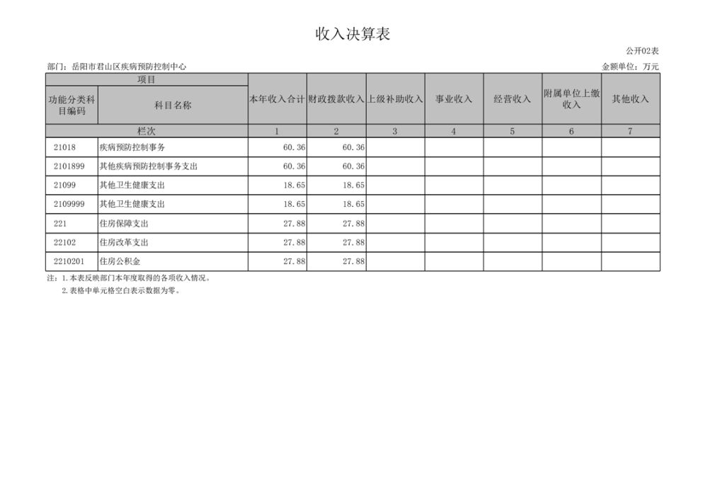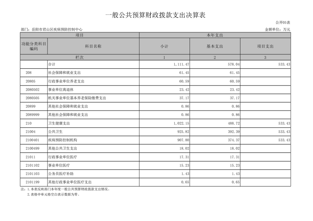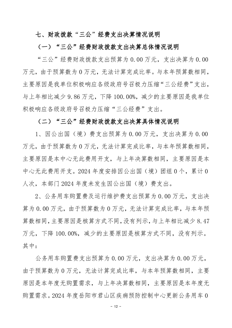 2024年度岳陽市君山區(qū)疾病預(yù)防控制中心部門決算公開
