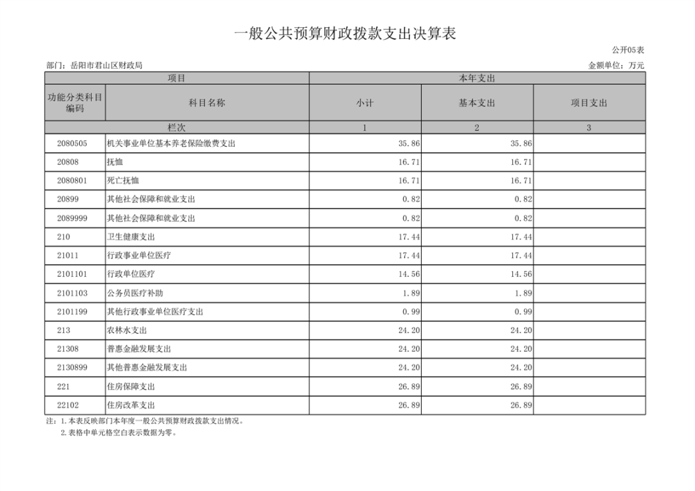 2024年度岳陽(yáng)市君山區(qū)財(cái)政局(本級(jí))決算公開(kāi)
