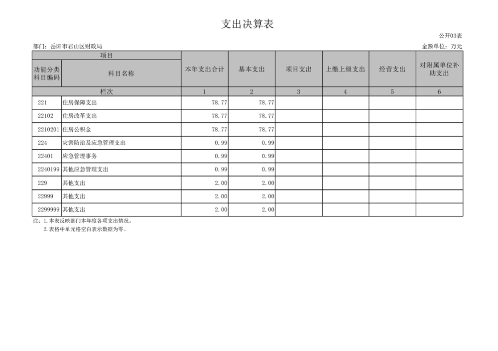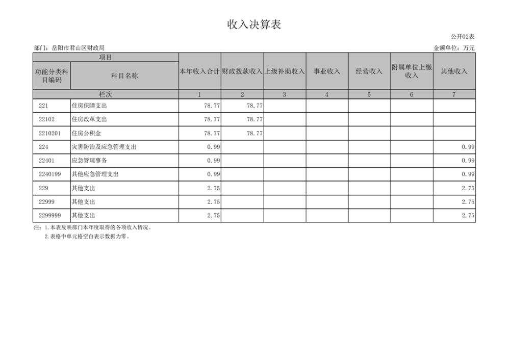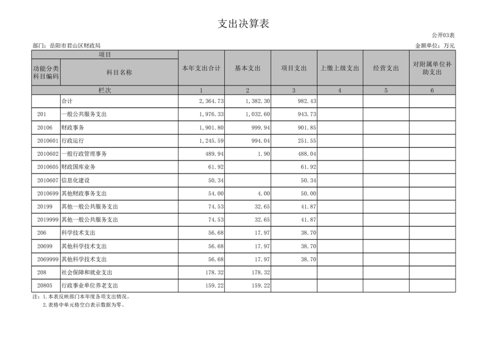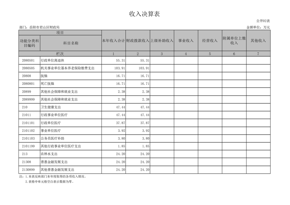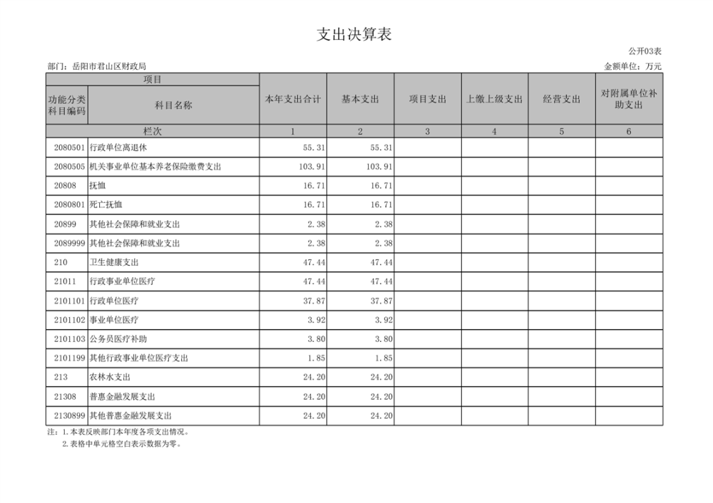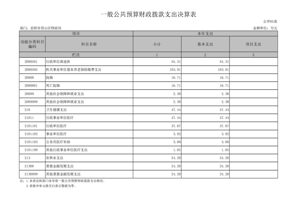 2024年度岳陽市君山區(qū)財政局(部門)決算公開