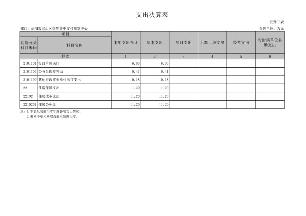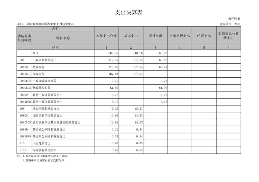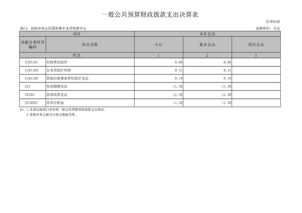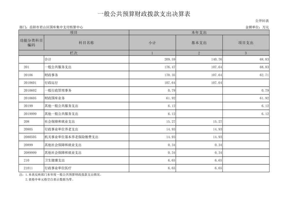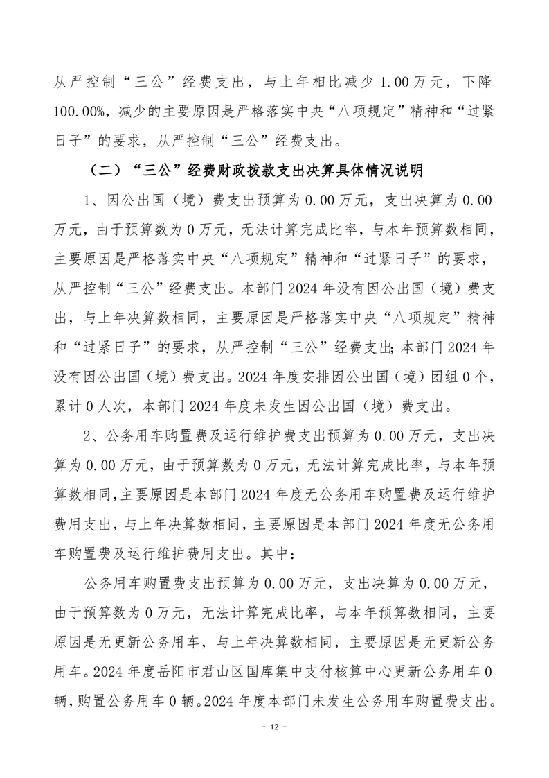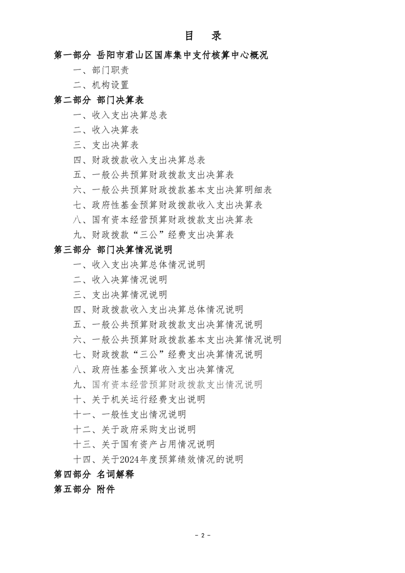 2024年度岳陽市君山區(qū)國庫集中支付核算中心部門決算公開